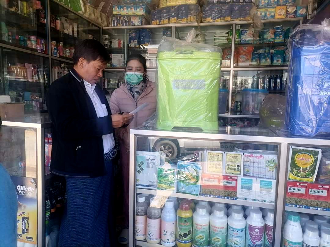 ထိုသို့ ဆောင်ရွက်ရာတွင် မြို့နယ်စိုက်ပျိုးရေးဦးစီးဌာန အစီးအရာရှိ ဦးဇော်မော်ဦးနှင့်အဖွဲ့က စိုက်ပျိုးရေး သွင်းအားစုများ ဖြန့်ဖြူးရောင်းချရာတွင် လုပ်ငန်းလိုင်စင်ပါ သတ်မှတ်ချက် များနှင့်အညီ ရောင်းချရေး၊ သက်တမ်းလွန် စိုက်ပျိုးရေးလုပ်ငန်းသုံး ပစ္စည်းများနှင့် အခါအားလျော်စွာ ရောင်းချခွင့် ပိတ်ပင်ထားသော ပစ္စည်းများအား ရောင်းချခြင်းမပြုရန်၊ မြန်မာ ဘာသာဖြင့်ဖော်ပြထားသည့် ကုန်အညွှန်း အမှတ်အသားဖော်ပြထားသည့် ကုန်ပစ္စည်းများကိုသာ ရောင်းချရေး၊ စိုက်ပျိုးရေးသုံး ပစ္စည်းများ ရောင်းချရာတွင် ဘောင်ချာ/ဖြတ်ပိုင်းပေး၍ စနစ်တကျရောင်းချရေး၊ ဘေးအန္တရာယ် ကင်းရှင်းသော ပိုးသတ်ဆေးများ ဖြန့်ဖြူးရောင်း ချရေး၊ ပိုးသတ်ဆေးစနစ်တကျ ကိုင်တွယ်အသုံးပြုပုံနှင့် ပိုးသတ်ဆေး ဥပဒေ၊ နည်းဥပဒေနှင့် လုပ်ထုံးလုပ်နည်းများကို အသေးစိတ် အသိပညာပေး ရှင်းလင်းဆွေးနွေးခဲ့ကြကြောင်း မြို့နယ် စိုက်ပျိုးရေးဦးစီးဌာနမှသည်။