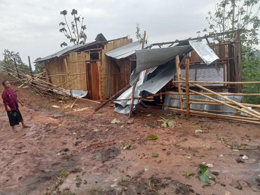 မိုင်းဆတ်မြို့၌ လေပြင်းတိုက်ခတ်မှုကြောင့် နေအိမ်အချို့ အမိုးလန်ပျက်စီး
