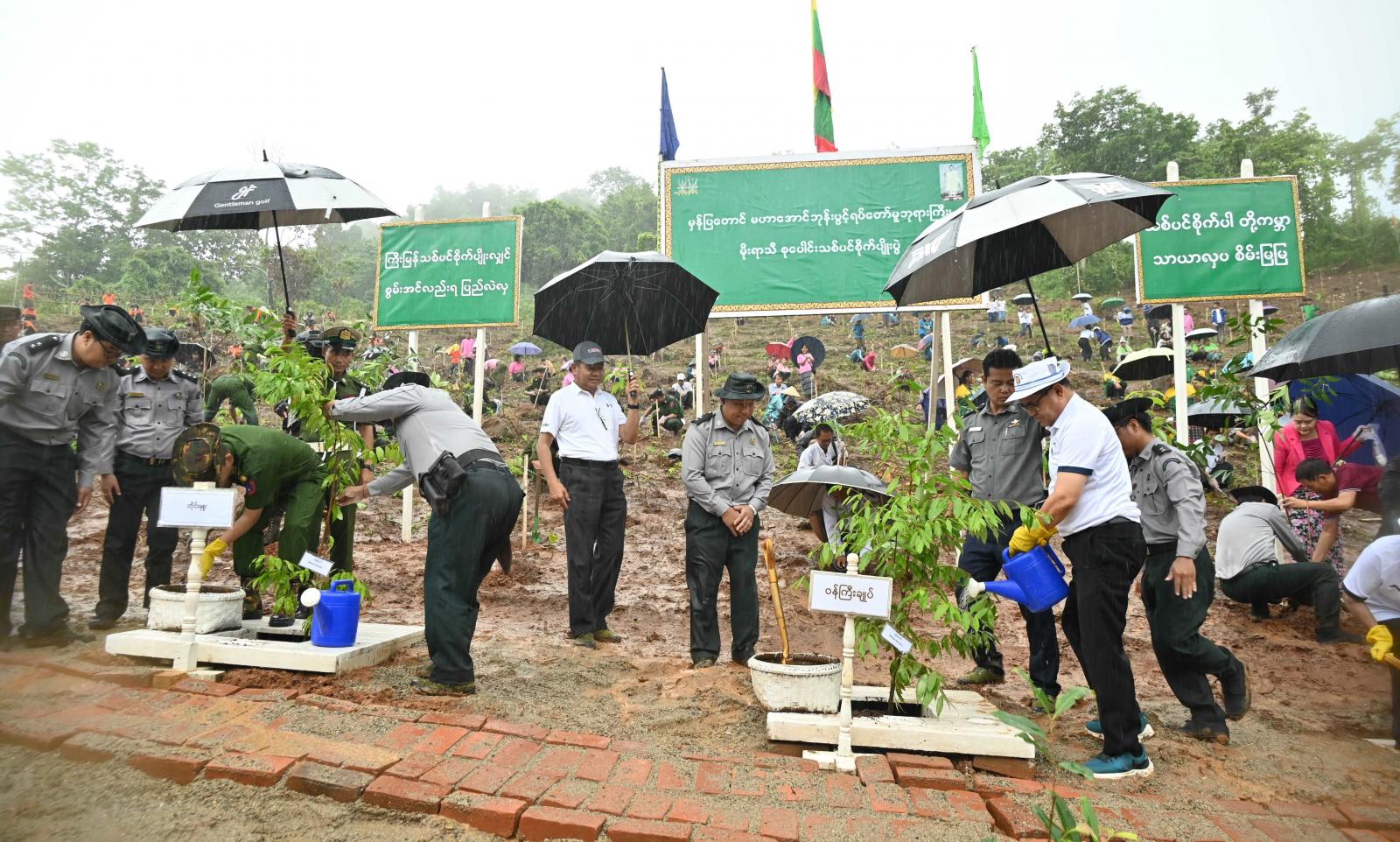 ထို့အတူ ဝိုင်းမော်မြို့နယ်၊ မိုင်းနားကျေးရွာအတွင်းရှိ မှန်ပြတောင် မဟာအောင်ဘုန်းပွင့် ရပ်တော်မူဘုရားကြီးတောင်ခြေ၌ ကျင်းပပြုလုပ်သည့် ၂၀၂၅ ခုနှစ်၊ မိုးရာသီ ပြည်နယ်အဆင့် (ဒဿမအကြိမ်) စုပေါင်းသစ်ပင်စိုက်ပျိုးပွဲသို့ တက်ရောက်ခဲ့ကြပြီး ပြည်နယ်ဝန်ကြီးချုပ်၊ မြောက်ပိုင်းတိုင်းစစ်ဌာနချုပ်တိုင်းမှူး၊ ပြည်နယ်တရားလွှတ်တော်တရားသူကြီးချုပ်၊ ဒုတိယ တိုင်းမှူးနှင့် တပ်မတော်အရာရှိကြီးများ၊ ပြည်နယ်အစိုးရအဖွဲ့ဝင် ဝန်ကြီးများ၊ ပြည်နယ်ဥပဒေချုပ်၊ ပြည်နယ်အဆင့်ဌာနဆိုင်ရာများ၊ ဝိုင်းမော်မြို့နယ်အတွင်းရှိ အရပ်ဘက်လူမှုကူညီရေး အသင်းအဖွဲ့များ စုပေါင်း၍ သတ်မှတ်နေရာအသီးသီး၌ အရိပ်ရအပင်ကြီးမျိုးများဖြစ်သည့် သစ်အယ်ပင် (၅၀၀)၊ သပြေပင် (၅၀၀)၊ ကံ့ကော်ပင် (၂၀၀)၊ အင်ကြင်းပင် (၁၀၀)၊ စကားဝါ (၅၀)ပင် တို့ဖြင့် ပျိုးပင်စုစုပေါင်း (၁၃၅၀)ပင်တို့အား တစ်ပျော်တစ်ပါး စုပေါင်းစိုက်ပျိုးပေးခဲ့ကြပြီး ပြည်နယ်ဝန်ကြီးချုပ်၊ တိုင်းမှူးနှင့် တာဝန်ရှိသူများက သစ်ပင်စိုက်ပျိုးပွဲ တက်ရောက် စိုက်ပျိုးပေးကြသူများအား ရင်းရင်းနှီးနှီး လိုက်လံနှုတ်ဆက်အားပေးခဲ့ကြသည်။