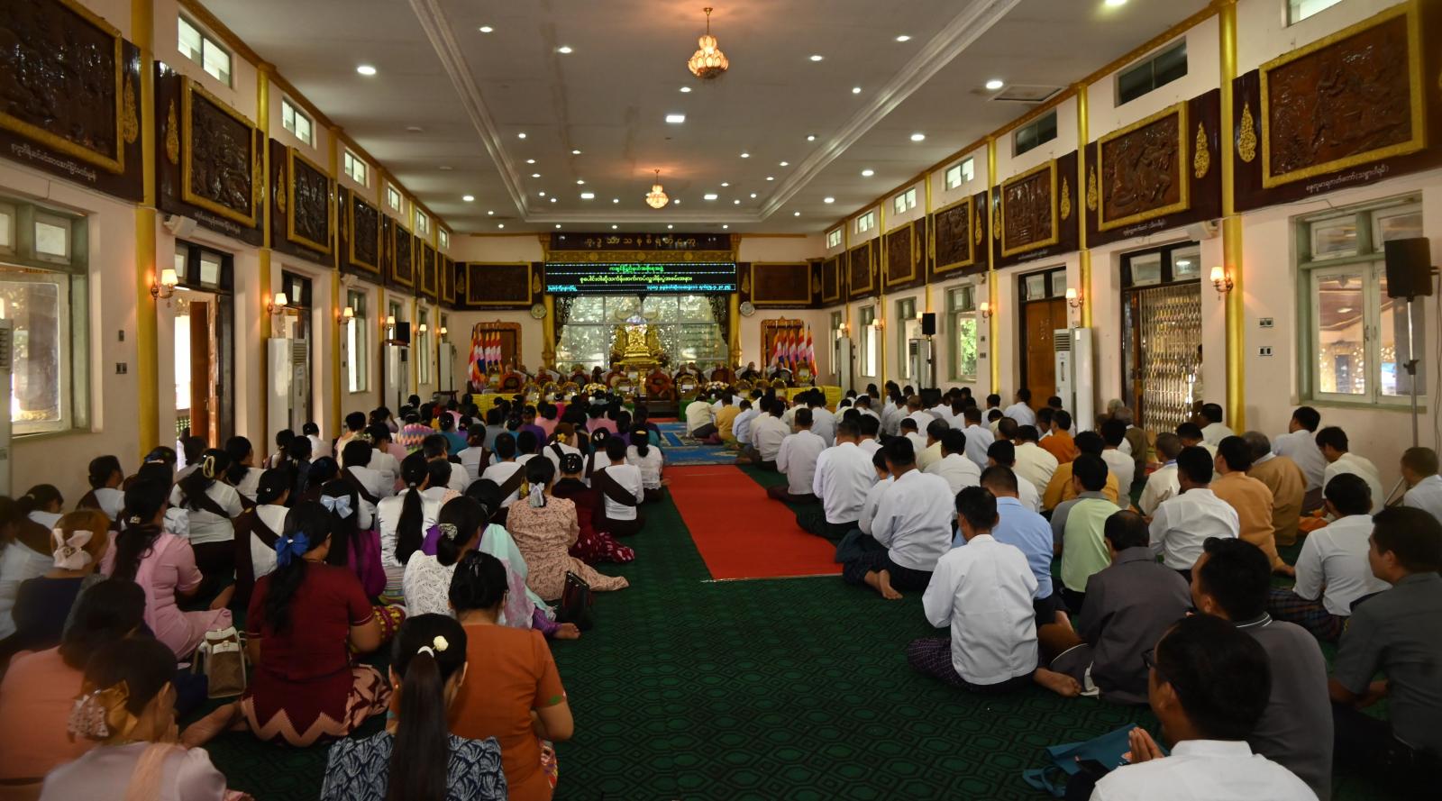ဆက်လက်၍ ပြည်နယ်ဝန်ကြီးချုပ်နှင့် ဇနီးဒေါ်နန်ဆိုင်း၊ ပြည်နယ်တရားလွှတ်တော် တရားသူကြီးချုပ်၊ ပြည်နယ်အစိုးရအဖွဲ့ဝင် ဝန်ကြီးများနှင့် ၎င်းတို့၏ ဇနီးများ၊ ပြည်နယ် ဥပဒေချုပ်၊ ပြည်နယ်အစိုးရ အဖွဲ့အတွင်းရေးမှူး၊ ပြည်နယ်/ ခရိုင်/ မြို့နယ်အဆင့် ဌာနဆိုင်ရာ များ၊ အလှူရှင်များ၊ ဖိတ်ကြားထားသော ဧည့်သည်တော်များထံမှ ငါးပါးသီလခံယူဆောက်တည်ကြပြီး ဆရာတော်အရှင်သူမြတ်များထံမှ ရွတ်ပွားသရဇ္ဇျယ်တော်မူအပ်သော ပရိတ်တရားတော်များကို နာယူကြည်ညိုကြသည်။