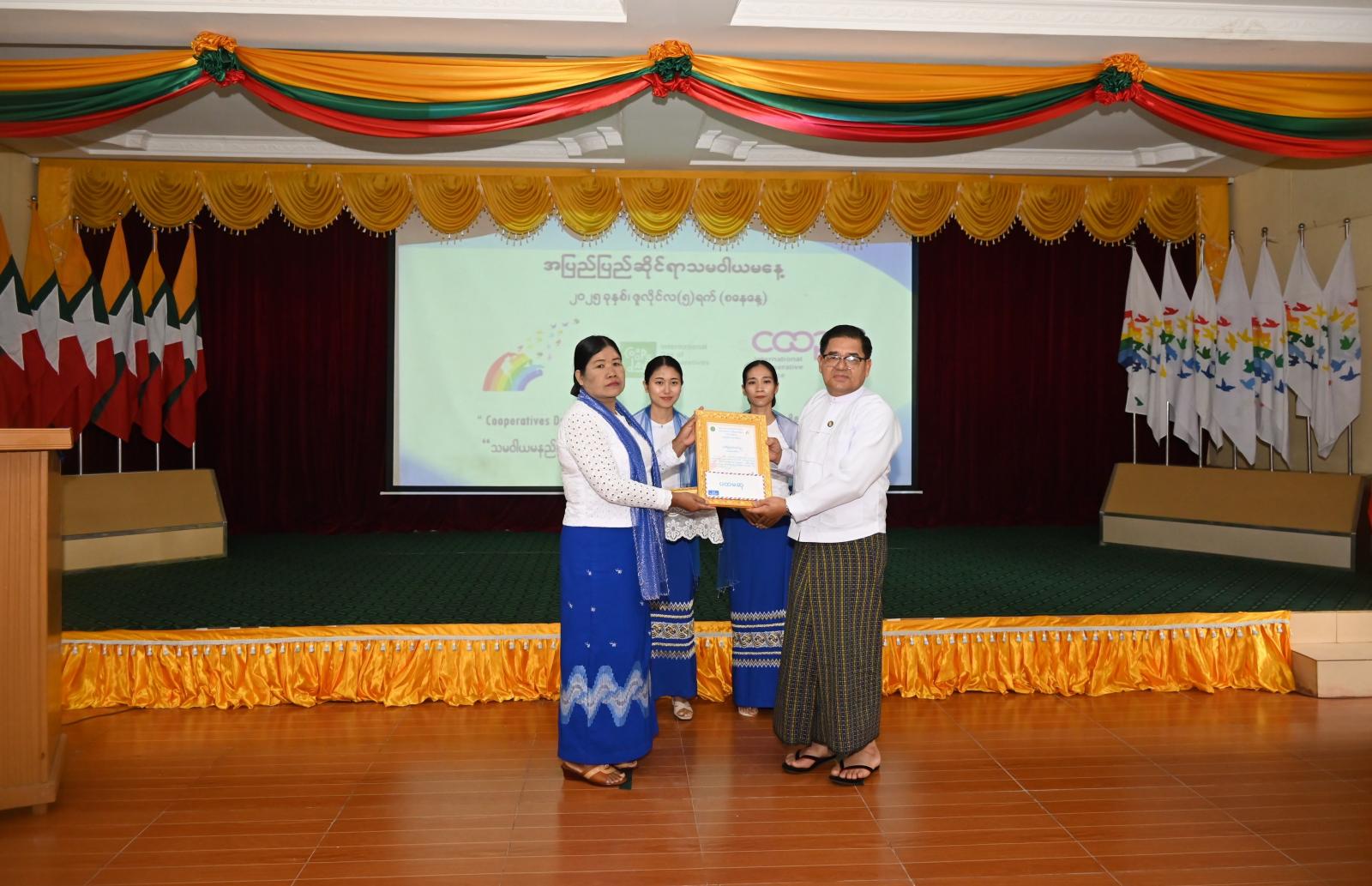 ထို့နောက် ပြည်နယ်အစိုးရအဖွဲ့ဝင် လမ်းပန်းဆက်သွယ်ရေးဝန်ကြီး ဦးခင်မောင်ထွေးက အပြည်ပြည်ဆိုင်ရာသမဝါယမအသင်းချုပ်က ပေးပို့လာသော သဝဏ်လွှာအားဖတ်ကြားပြီး ပြည်နယ် ဝန်ကြီးချုပ်က ကချင်ပြည်နယ်အတွင်း သမဝါယမလုပ်ငန်းများ ဆောင်ရွက်လျက်ရှိသည့် မြို့နယ် ပေါင်း(၁၃) မြို့နယ်အနက် ၂၀၂၄-၂၀၂၅ ဘဏ္ဍာရေးနှစ် သမဝါယမလုပ်ငန်းများတွင် ထူးချွန်စွာ အကောင်းဆုံး စွမ်းဆောင်နိုင်ခဲ့ကြသော ပထမဆုရ မြစ်ကြီးနားမြို့နယ်၊ ဒုတိယဆုရ မိုးကောင်းမြို့နယ်နှင့် တတိယဆုရ ပူတာအိုမြို့နယ်များအတွက် ဂုဏ်ပြုမှတ်တမ်းလွှာနှင့် ဂုဏ်ပြုချီးမြှင့်ငွေများကို ပေးအပ်ချီးမြှင့်ခဲ့သည်။