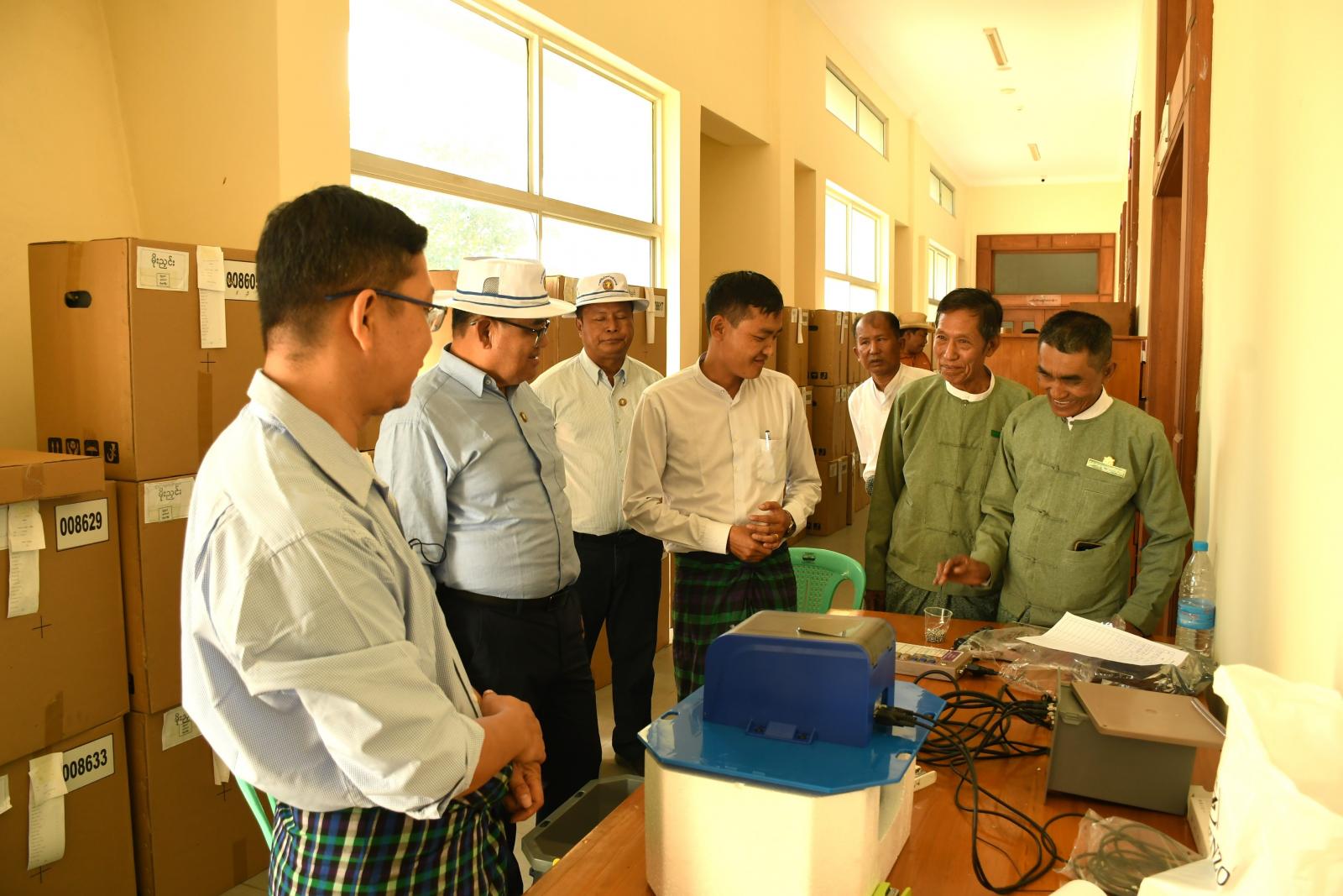 ကချင်ပြည်နယ်ဝန်ကြီးချုပ် ဦးခက်ထိန်နန်သည် တာဝန်ရှိသူများနှင့်အတူ နိုဝင်ဘာ ၂၀ ရက် မွန်းလွဲပိုင်းက ပြည်နယ်/ ခရိုင်/ မြို့နယ်ရွေးကောက်ပွဲကော်မရှင်အဖွဲ့ခွဲများ၏ မြန်မာအီလက်ထရော နစ်မဲပေးစက်များ စမ်းသပ်စစ်ဆေးဆောင်ရွက်နေမှု အခြေအနေများ၊ ကချင်ပြည်နယ်တရားလွှတ်တော်ရုံး အဆောက်အဦသစ် တည်ဆောက်နေမှုများနှင့် ဧရာဝတီမြစ်ရေကြီးရေလျှံမှုမှ ကာကွယ်နိုင် ရေး ရေလျှံတာကျောက်စီမြေထိန်းနံရံနှင့်တမံ တည်ဆောက်နေမှုများအား ကွင်းဆင်းစစ်ဆေးခဲ့ကြသည်။