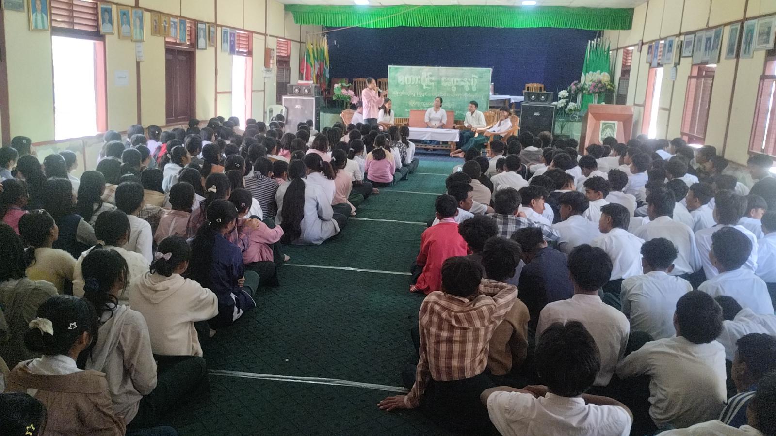 ရှေးဦးစွာ အ.ထ.က(စဉ့်ကိုင်) ကျောင်းအုပ်ဆရာမကြီးက အဖွင့်အမှာစကား ပြောကြားခဲ့သည်။ ထို့နောက် မြို့နယ်ပြန်ကြားရေးနှင့်ပြည်သူ့ဆက်ဆံရေးဦးစီးဌာနမှ ဒုတိယဦးစီးမှူး ဒေါ်စန္ဒာအေးအောင်က ဦးဆောင်ဆွေးနွေးခဲ့ပြီး အထက(စဉ့်ကိုင်)ကျောင်းမှ Grade-11 ကျောင်းသား မောင်နောင်လင်းခန့်က "အလောင်းကစားပြုလုပ်ခြင်း၏ နောက်ဆက်တွဲ ဆိုးကျိုးများ" ခေါင်းစဉ်ဖြင့်လည်းကောင်း၊ Grade-11 ကျောင်းသား မောင်ရာဇာရဲထက်က" အွန်လိုင်းမီဒီယာမှတစ်ဆင့် အကြမ်ဖက်လုပ်ဆောင်မှုများနှင့် အွန်လိုင်းဂိုဏ်းများ ပေါ်ပေါက်လာခြင်း" ခေါင်းစဉ်ဖြင့်လည်းကောင်း၊ Grade-11 ကျောင်းသူ မအေးငြိမ်းသူက" ပျင်းရိခြင်း၏ နောက်ဆက်တွဲဆိုးကျိုးများ " ခေါင်းစဉ်ဖြင့်လည်းကောင်း၊ Grade-11 ကျောင်းသား မောင်မိုးထက်အောင်က " မူးယစ်ဆေးဝါး သုံးစွဲခြင်းကြောင့် အကြမ်းဖက်မှု ဖြစ်ပေါ်လာနိုင်သည့် အခြေအနေများ " ခေါင်းစဉ်ဖြင့်လည်းကောင်း အသီးသီးဆွေးနွေးခဲ့ပြီး တက်ရောက်လာသည့် ကျောင်းသား/ကျောင်းသူများက သိရှိလိုသည်များ မေးမြန်းခဲ့ရာ ဒုတိယဦးစီးမှူးက ပြန်လည်ဖြည့်စွက် ဆွေးနွေးဖြေကြားခဲ့ကြောင်း သိရသည်။