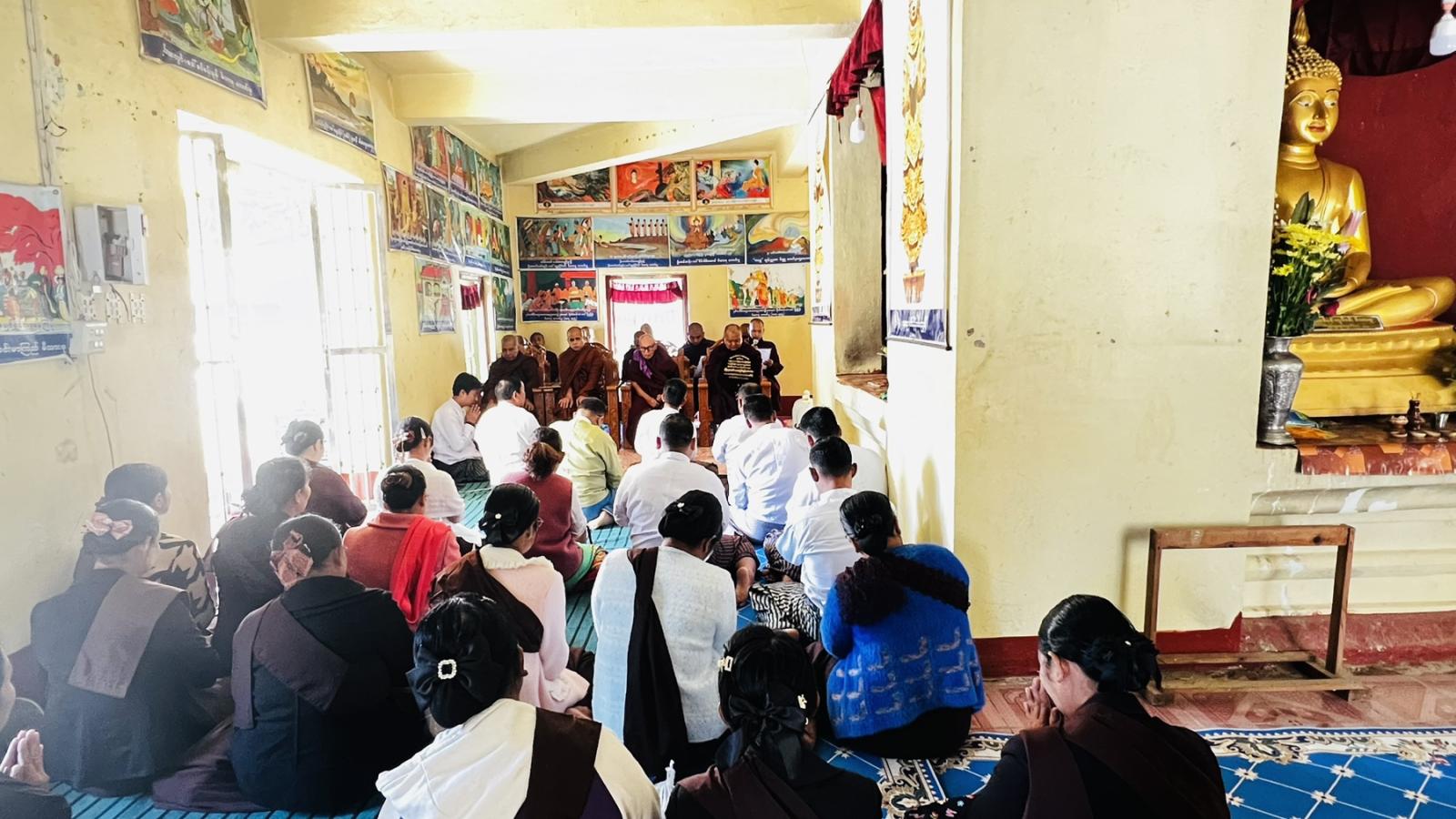 ထို့နောက် ငါးပါးသီလခံယူဆောက်တည်ကြပြီး ပဋ္ဌာန်းအမွှမ်းဂါထာကို ရွတ်ဖတ်ကာ ကြွရောက်လာကြသည့် ဆရာတော်၊ သံဃာတော်များ၊ ဧည့်ပရိသတ်များက ပဋ္ဌာန်းပစ္စယုဒ္ဒေပါဠိတော်ကို သံပြိုင်ရွတ်ဆိုပူဇော်ကြသည်။ ၎င်းနောက်တာဝန်ရှိသူများက ထေရဝါဒဗုဒ္ဓသာသနာပြု(ဗဟို)ကျောင်းဆရာတော်နှင့် ဆရာတော်၊ သံဃာတော်များအား နေ့ဆွမ်း ဆက်ကပ်လှူဒါန်းကြသည်။