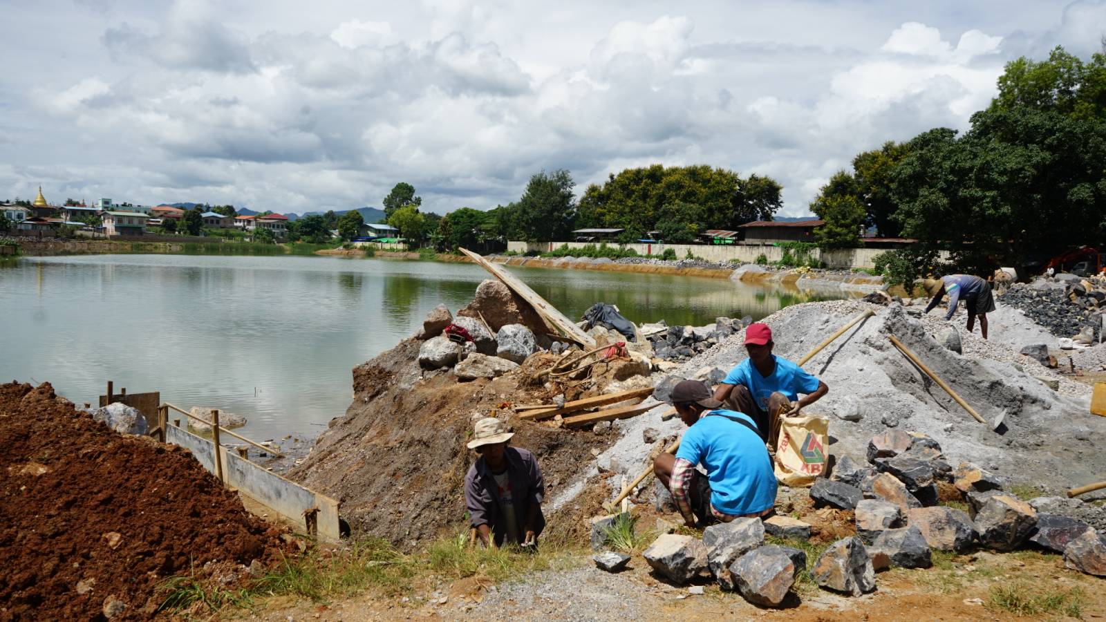 ရှမ်းပြည်နယ်(တောင်ပိုင်း)၊ ပအိုဝ်းကိုယ်ပိုင်အုပ်ချုပ်ခွင့်ရဒေသ၊ ဟိုပုံးမြို့နယ်တွင် ၂၀၂၂-၂၀၂၃ ဘဏ္ဍာရေးနှစ် ပြည်နယ်ငွေလုံးငွေရင်း ရန်ပုံငွေကျပ် (၃၅၀)သန်းဖြင့်ဆောင်ရွက်သည့် ဟိုပုံးမြို့ တောင်ရပ်ကွက်ရှိ နောင်ဘိုကန် ကျောက်ရိုးစီမြေကာနံရံတည်ဆောက်လျက်ရှိကြောင်း မြို့နယ်ဆည်မြောင်းနှင့် ရေအသုံးချမှုစီမံခန့်ခွဲရေးဦးစီးဌာနမှ သိရသည်။