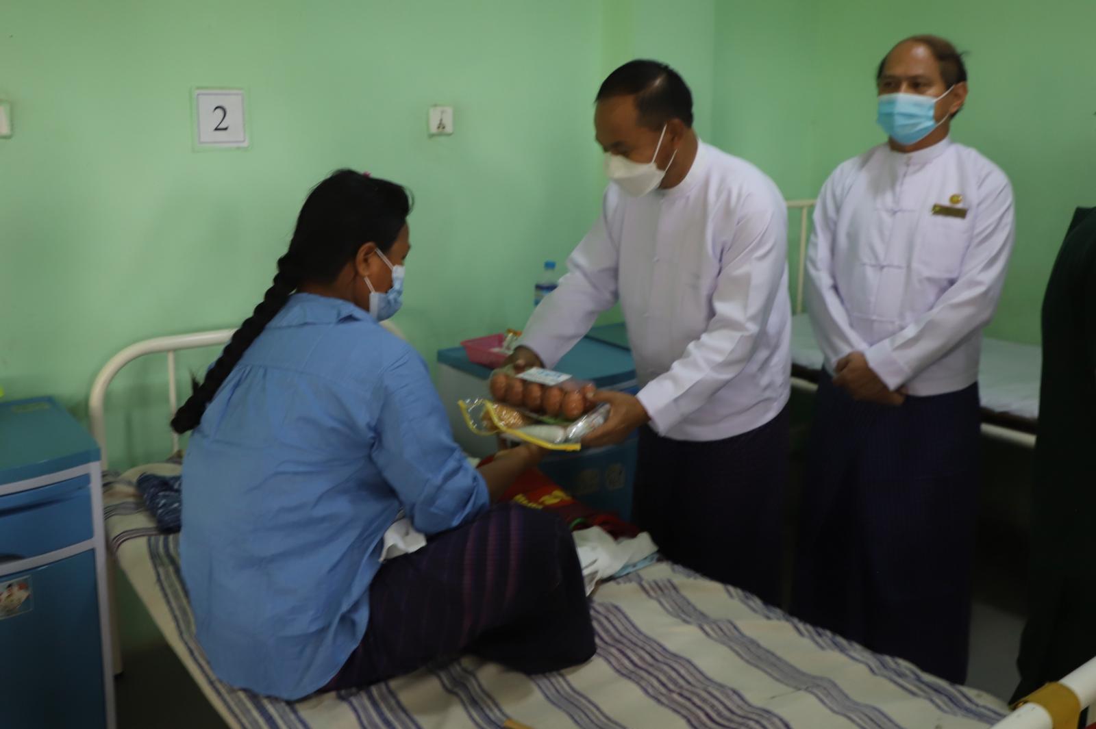 ထို့နောက် တိုင်းဒေသကြီး ဝန်ကြီးချုပ် ဦးမြတ်ကျော်နှင့် တာဝန်ရှိသူများသည် ၂၀၂၂-ခုနှစ်၊ တိုင်းဒေသကြီး အာဟာရဖွံ့ဖြိုးရေးရက်သတ္တပတ် အစီအစဉ်အဖြစ် မုံရွာမြို့၊ ကုတင်-၂၀၀ ဆံ့ အမျိုးသမီးသားဖွားမီးယပ်နှင့် ကလေးအထူးကုဆေးရုံသို့ သွားရောက်၍ ကိုယ်ဝန်ဆောင်နှင့် နို့တိုက်မိခင်များအား သံဓာတ်အားဆေး၊ ဗီတာမင်ဘီဝမ်းဆေးပြားများ၊ ကြက်ဥနှင့် အိုင်အိုဒင်း ဆားများအား တာဝန်ရှိသူများနှင့်အတူ ဝေငှပေးခဲ့ကြပြီး အထူးကြပ်မတ်အဆောင်တွင် ကလေး ငယ်များအား ဆေးကုသပေးနေမှုများအား ကြည့်ရှုအားပေးခဲ့ကြပြီး လိုအပ်သည်များကို တာဝန် ရှိသူများနှင့် ဖြည့်စည်းပေါင်းစပ် ဆောင်ရွက်ပေးခဲ့သည်။
