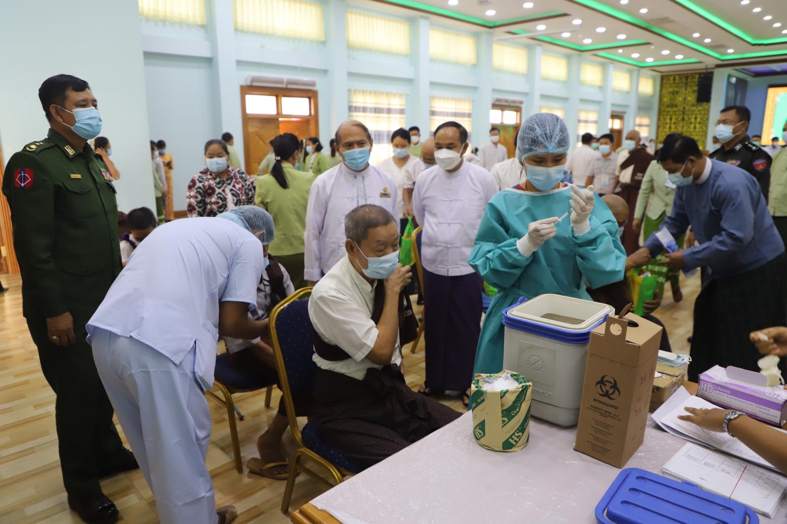 ဆက်လက်ပြီး အခမ်းအနားအပြီးတွင် သက်ကြီးအဘိုး၊ အဘွားများအား ကိုဗစ်-၁၉ Vaccine Booster ဆေးထိုးနှံပေးနေမှုများအား တိုင်းဒေသကြီး ဝန်ကြီးချုပ်နှင့် တာဝန်ရှိသူများက ကြည့်ရှုအားပေးခဲ့ကြသည်။