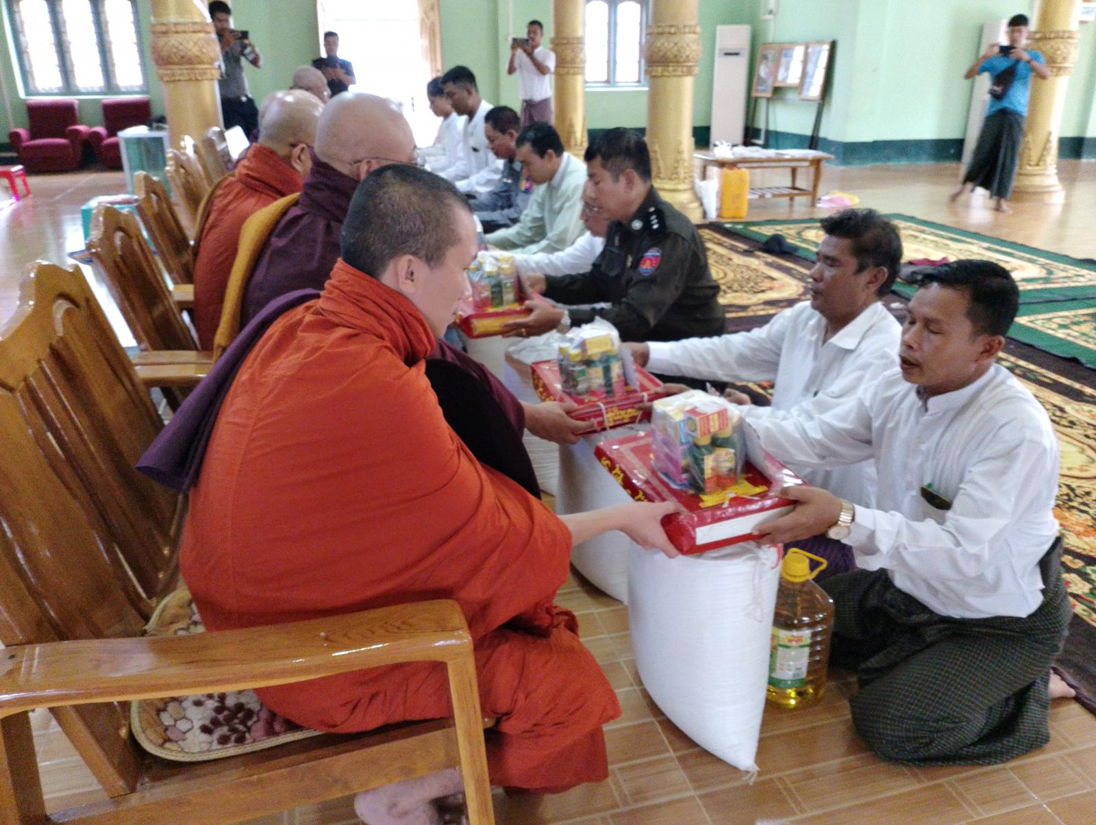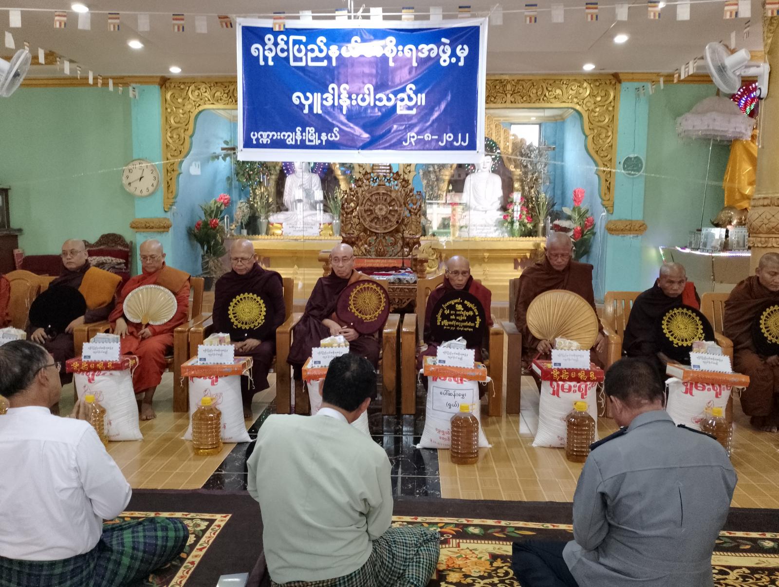 ရခိုင်ပြည်နယ်အစိုးရအဖွဲ့မှ ပုဏ္ဏားကျွန်းမြို့နယ်အတွင်းရှိ ထေကြီး၊ ဝါကြီး ဘုန်းတော်ကြီးကျောင်းတိုက်များသို့ ဆန်၊ ဆီ၊ ဆေး၊ သင်္ကန်းနှင့် ဝတ္ထုပစ္စည်းများ ဆက်ကပ်လှူဒါန်းခြင်းကို ယမန်နေ့၊ နေ့လည်(၁)နာရီက ပုဏ္ဏားကျွန်းမြို့ မြို့မပရိယတ္တိဘုန်းတော်ကြီးကျောင်းတိုက်သို့သွားရောက် လှူဒါန်းခဲ့ကြသည်။