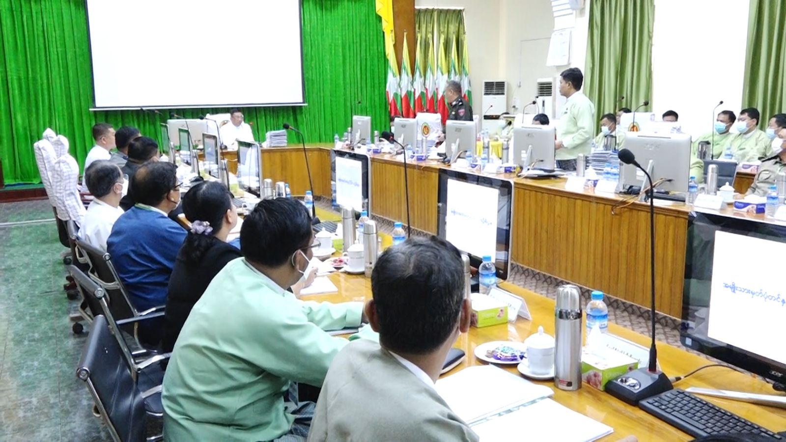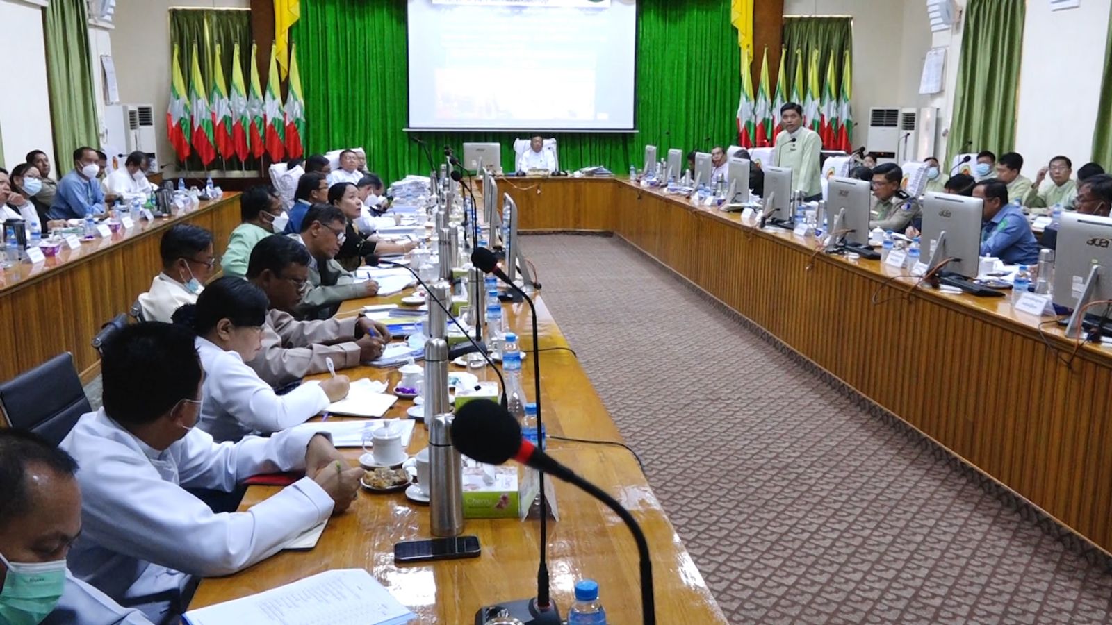 မွန်ပြည်နယ်အစိုးရအဖွဲ့၏ (၆) လပတ်ကာလအတွင်း လုပ်ငန်းဆောင်ရွက်ချက်များနှင့် စပ်လျဉ်းသည့် လုပ်ငန်းညှိနှိုင်းအစည်းအဝေး ဒုတိယနေ့ကို ယမန်နေ့ နံနက်ပိုင်းက ပြည်နယ်အစိုးရအဖွဲ့ရုံး၊ အောင်ဆန်းခန်းမ၌ ကျင်းပပြုလုပ်ခဲ့ရာ ပြည်နယ်ဝန်ကြီးချုပ် ဦးဇော်လင်းထွန်း၊ ပြည်နယ်ဝန်ကြီးများ၊ ဌာနဆိုင်ရာအကြီးအမှူးများ၊ ခရိုင်/မြို့နယ်စီမံ အုပ်ချုပ်မှုအဖွဲ့ဥက္ကဋ္ဌ၊ ခရိုင်/မြို့နယ်အုပ်ချုပ်ရေးမှူးများ တက်ရောက်ခဲ့သည်။ ပြည်နယ်အဆင့်ဌာနဆိုင်ရာများမှ (၆) လပတ်ကာလအတွင်း လုပ်ငန်းဆောင်ရွက်ချက်များနှင့် စပ်လျဉ်းသည့် ဌာနအလိုက် အကောင်အထည်ဖော် ဆောင်ရွက်လျက်ရှိသည့် အခြေအနေများ၊ ဆက်လက်ဆောင်ရွက်မည့် အစီအစဉ်များ၊ လုပ်ငန်းစိစစ်တွေ့ရှိချက်နှင့် အကြံပြုချက်များ၊ ဘဏ္ဍာငွေသုံးစွဲမှုနှင့် အခွန်ငွေကောက်ခံရရှိမှု အခြေအနေများ၊ ဆောင်ရွက်ဆဲ ဒေသဖွံ့ဖြိုးရေး လုပ်ငန်းများအပေါ် ကြပ်မတ်ဆောင်ရွက်မှု အခြေအနေများ၊ စိုက်ပျိုးရေး၊ မွေးမြူရေး ပညာရေး၊ ကျန်းမာရေးကဏ္ဍများအား အစီရင်ခံ ရှင်းလင်းတင်ပြခဲ့ကြပြီး သက်ဆိုင်ရာ ပြည်နယ်ဝန်ကြီးများက ဖြည့်စွက်ဆွေးနွေးခဲ့ကြသည်။