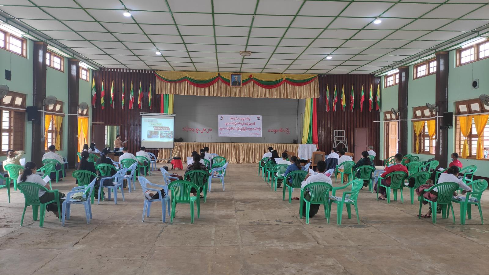 ရှမ်းပြည်နယ်(မြောက်ပိုင်း)၊ ကျောက်မဲမြို့၊ မြို့ကျက်သရေဆောင်ခန်းမ၌ ရပ်ကွက်/ကျေးရွာ ရွေးကောက်ပွဲကော်မရှင်အဖွဲ့ခွဲများ၏ ရွေးကောက်ပွဲဆိုင်ရာ စွမ်းရည်မြှင့်သင်တန်းကို Social Distancing နှင့်အညီ ယနေ့ နံနက် ၉ နာရီမှစ၍ ဖွင့်လှစ်ခဲ့သည်။