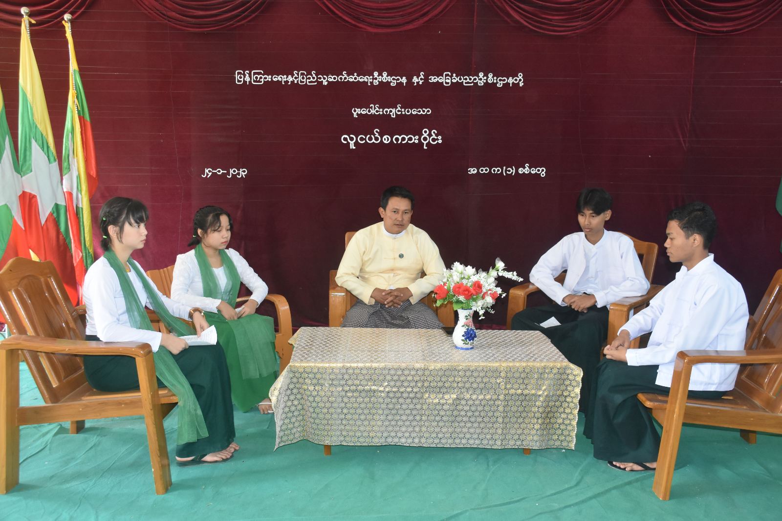 ဦးစွာ ပြန်ကြားရေးနှင့်ပြည်သူ့ဆက်ဆံရေးဦးစီးဌာန၊ စစ်တွေခရိုင်ရုံးမှဦးစီး အရာရှိဦးမြင့်စိုးက ဦးဆောင်ဆွေးနွေးသူအဖြစ်ပါဝင်ဆောင်ရွက်ပြီး အထက-၁(စစ်တွေ)မှ ကျောင်းသား၊ ကျောင်းသူလေးများက စကားဝိုင်းဆွေးနွေးကြသည်။