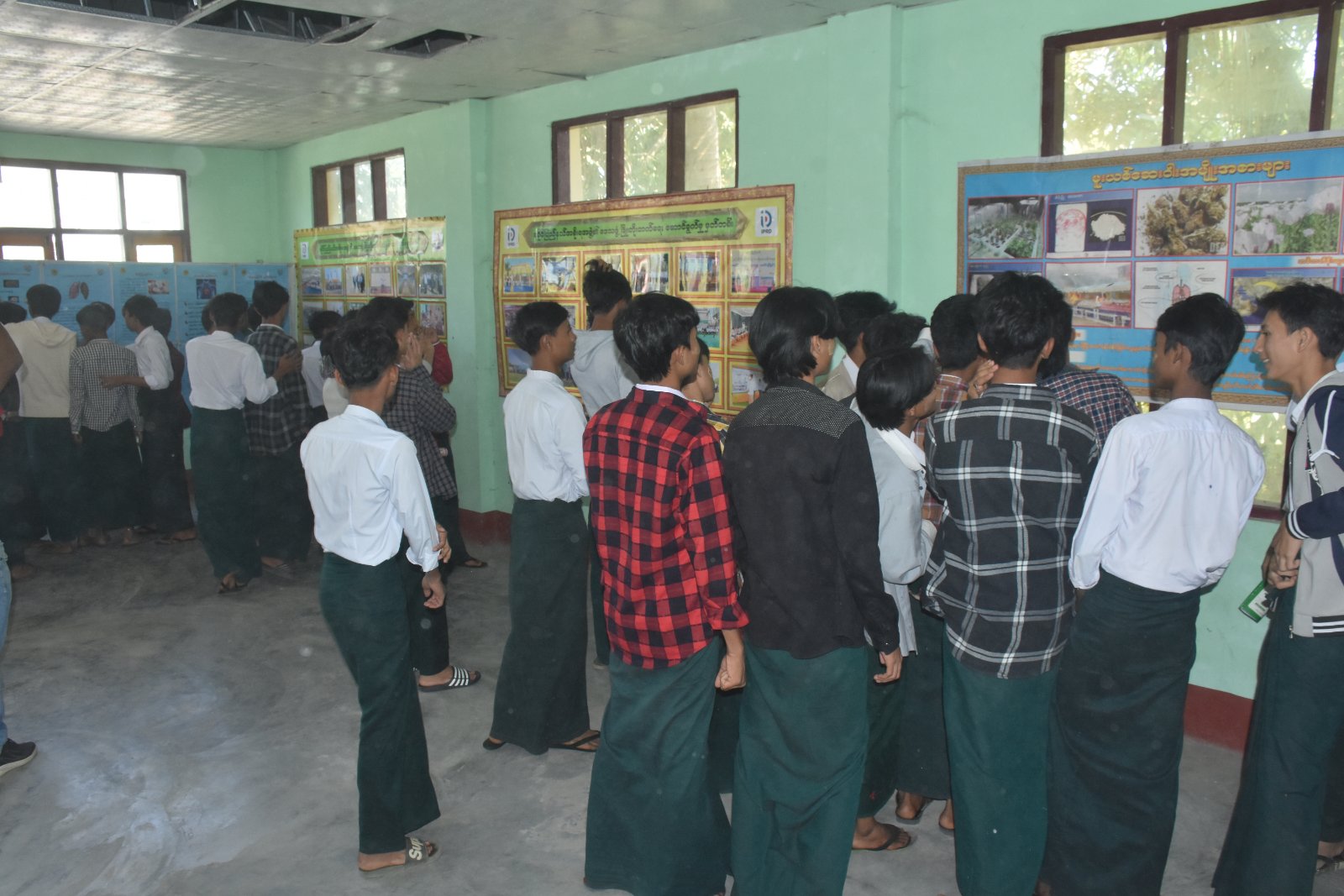 ထို့နောက် ကျောင်းသား၊ ကျောင်းသူများသည်ခန်းမအတွင်း၌ ရခိုင်ပြည်နယ်အစိုးရအဖွဲ့၏ ဒေသဖွံ့ဖြိုးတိုးတက်ရေးဆောင်ရွက်မှု မှတ်တမ်းဓာတ်ပုံများ၊ သဘာဝဘေးအန္တရာယ်အသိပညာပေးဓာတ်ပုံ၊ မူးယစ်ဆေးဝါးအန္တာရာယ်ကြိုတင်ကာကွယ်ရေးအသိပညာပေးနံရံကပ် စာစောင်များနှင့် စာအုပ်၊ စာပေများခင်းကျင်းပြသထားမှု အားလှည့်လည်ကြည့်ရှုခဲ့ကြသည်။