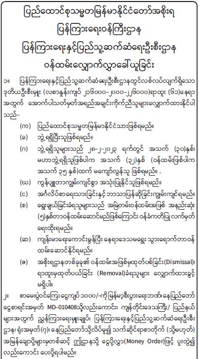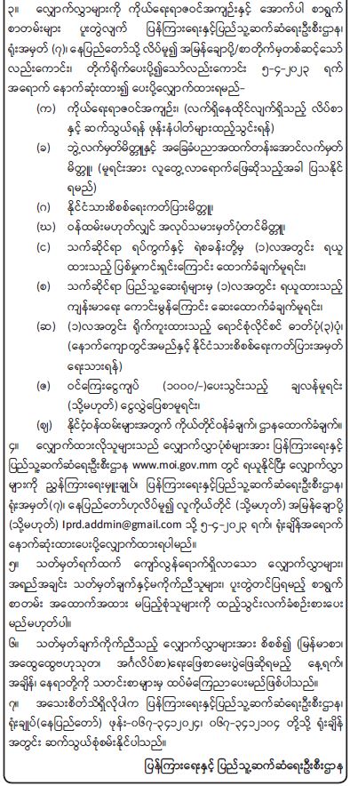 ပြန်ကြားရေးနှင့်ပြည်သူ့ဆက်ဆံရေးဦးစီးဌာန ဝန်ထမ်းလျှောက်လွှာခေါ်ယူခြင်း