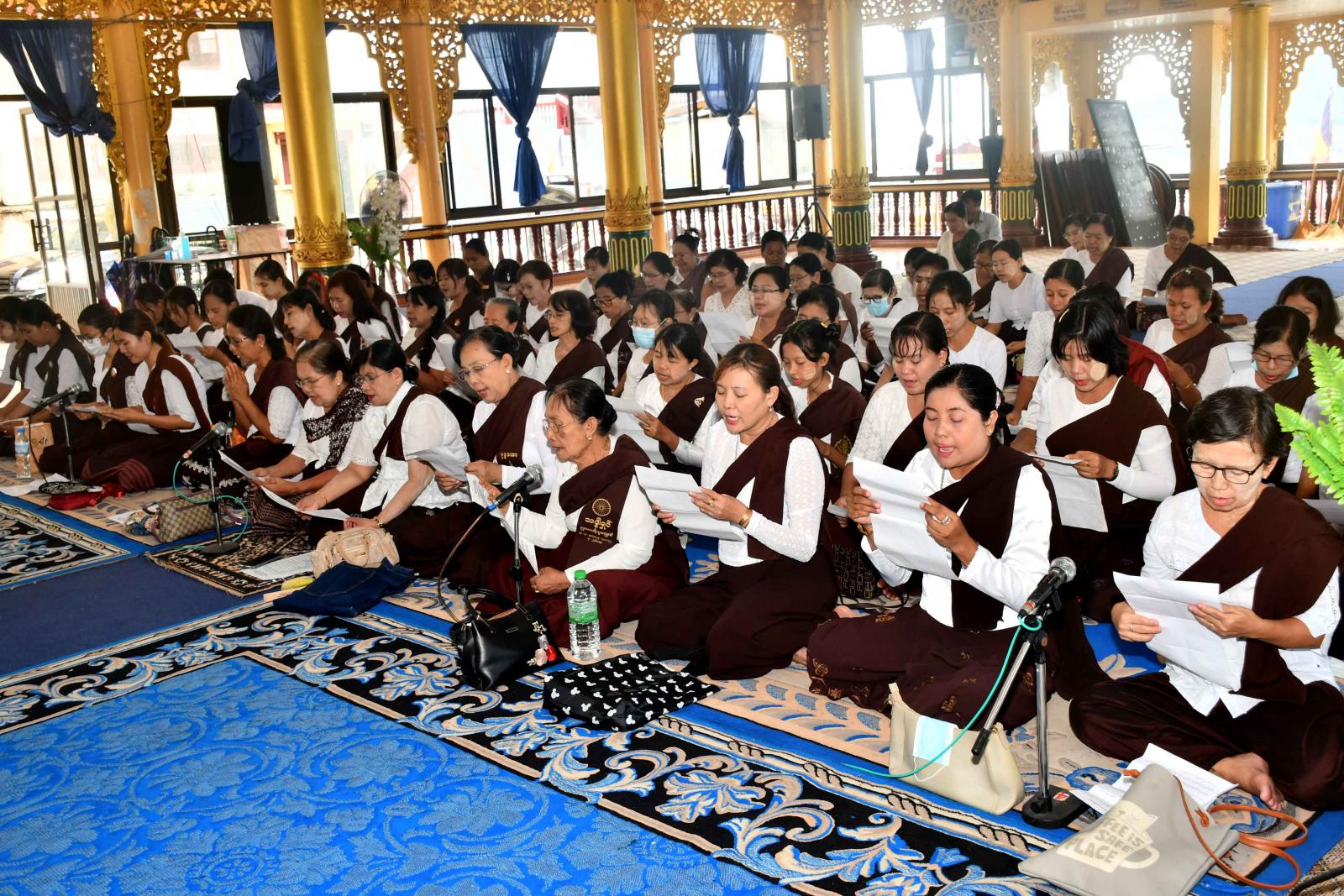 ထို့နောက် နိုင်ငံတော်ဩဝါဒါစရိယ အဘိဓဇမဟာရဋ္ဌဂုရု ဘဒ္ဒန္တလာသန လှည်းဘီးပရိယတ္တိစာသင်တိုက် ဆရာတော်ထံမှ ဧည့်ပရိတ်သတ်အပေါင်းတို့က ငါးပါး သီလ ခံယူဆောက်တည်ကြပြီး ဆရာတော်ထံမှ ဗုဒ္ဓနေ့ ဒေသနာတော်များ နာယူမှတ်သားခဲ့ကြသည်။ ထိုနောက် ဘဏ္ဍာတော်ထိန်း ဂေါပကအဖွဲ့မှ ဆရာတော်၊ သံဃာတော် အရှင်သူမြတ်များအား လှူဘွယ်ဝတ္ထုများ ဆက်ကပ်လှူဒါန်းခဲ့ကြသည်။
