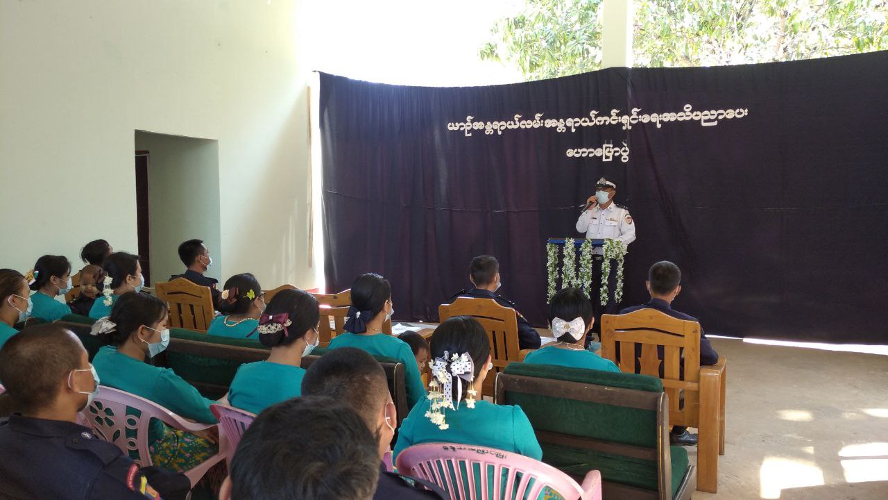 အဆိုပါ ဟောပြောပွဲတွင် အမှတ်(၈၁)ယာဥ်ထိန်းတပ်ဖွဲ့မှ ဒုတိယရဲမှူး ညီညီအောင်က ယာဥ်အန္တရာယ်၊ လမ်းအန္တရာယ်ကင်းရှင်းရေးအတွက် လိုက်နာရမည့်အချက်များ၊ ယာဥ်အန္တရာယ် ဖြစ်ပွားတတ်သည့် အခြေအနေများကို အသိပညာပေး ဟောပြောခဲ့ပြီးနောက် ယာဥ်ထိန်းတပ်ဖွဲ့ဝင်များက ယာဥ်အန္တရာယ်လမ်းအန္တရာယ် အသိပညာပေး လက်ကမ်းစာစောင်များ ဖြန့်ဝေပေးခဲ့သည်။ ဟောပြောပွဲသို့ မြို့နယ်မီးသတ်စခန်းမှ အရာရှိများ၊ မီးသတ်တပ်ဖွဲ့ဝင်များ၊ အရန်မီးသတ်တပ်ဖွဲ့ဝင်များ၊ တပ်ဖွဲ့ဝင်မိသားစုဝင်များ တက်ရောက် ခဲ့ကြကြောင်း သိရသည်။