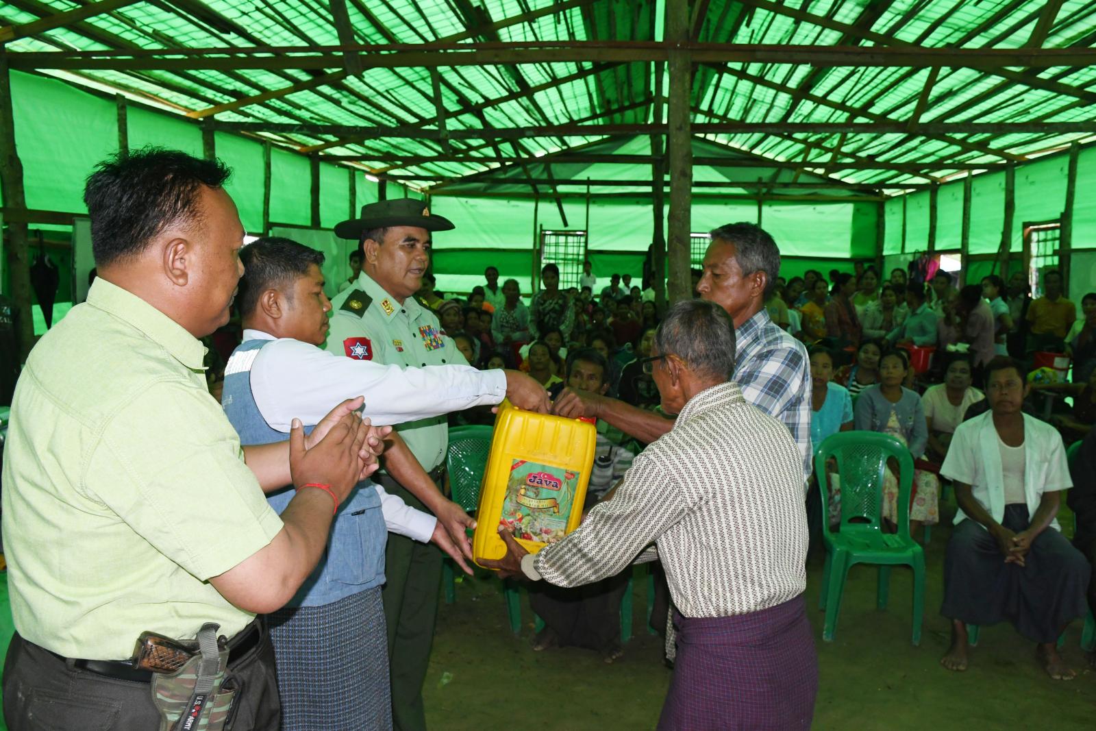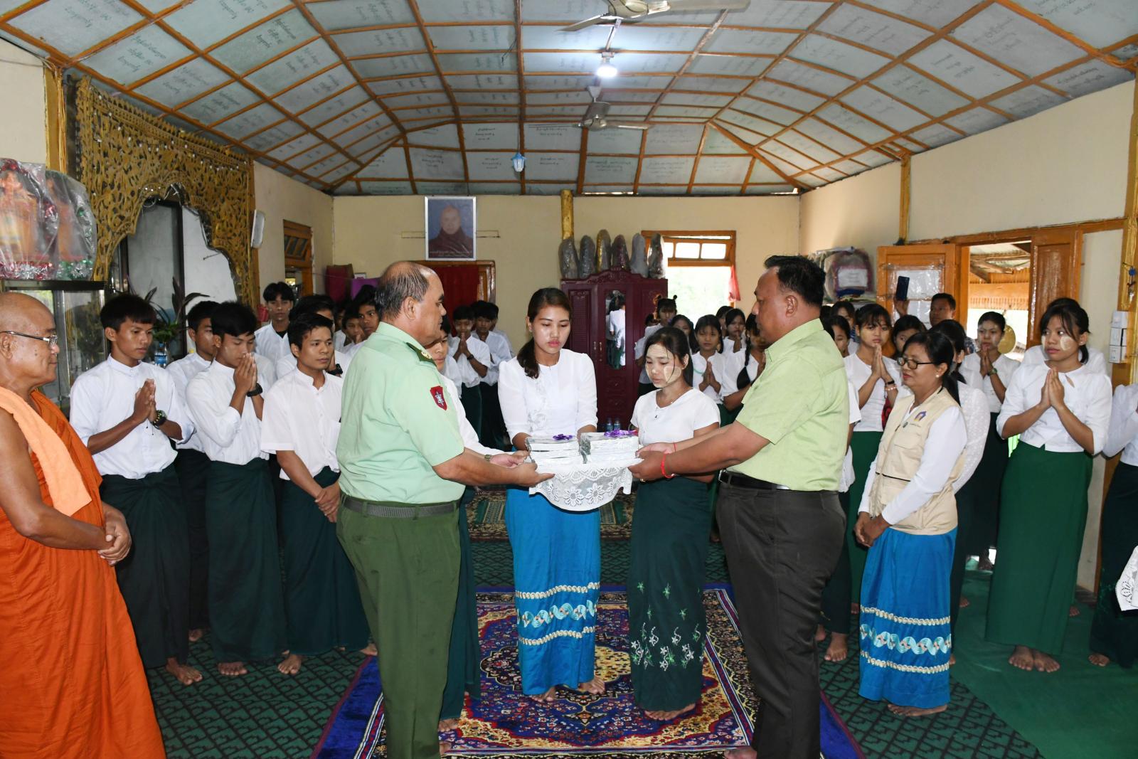 ရခိုင်ပြည်နယ် မောင်တောမြို့တွင် ပြန်လည်ထူထောင်ရေးအတွက် ရောက်ရှိနေသော ဗိုလ်မှူးချုပ် တင်ဆွေ၊ ခရိုင်စီမံအုပ်ချုပ်ရေးအဖွဲ့ဉက္ကဋ္ဌ ဦးနေဦးနှင့် တာ၀န်ရှိသူများသည် (၃)မိုင် လူငယ်ဖွံ့ဖြိုးရေးပရဟိတဂေဟာရှိ ကျောင်းသား၊ ကျောင်းသူများအား ထောက်ပံ့ငွေ၊ ကျောင်းသုံး ဗလာစာအုပ်များပေးအပ်ခြင်း၊ လေဘေးသင့်ပြည်သူများအား ထောက်ပံ့ပစ္စည်းများ မြေပြင်ကွင်းဆင်းထောက်ပံ့ခြင်းနှင့် ဓါတ်အားလိုင်းကြိုးများ ပြန်လည်သွယ်တန်း ပြုပြင်နေမှုများအား ယနေ့နံနက်ပိုင်းက မြေပြင်ကွင်းဆင်း ဆောင်ရွက်ခဲ့ကြသည်။