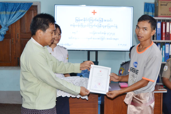 အဆိုပါ အခမ်းအနားတွင် မြို့နယ်ကြက်ခြေနီအသင်း နာယက မြို့နယ်အုပ်ချုပ်ရေးမှူး၏ ကိုယ်စား ဒုတိယမြို့နယ်အုပ်ချုပ်ရေးမှူး ဦးဇင်မင်းဦးက အမှာစကား ပြောကြားပြီး မြို့နယ်ကြက်ခြေနီ သူနာပြုတပ်ဖွဲ့မှ တပ်ဖွဲ့မှူး ဦးစိုင်းဆန်းလှထွန်းက သင်တန်းဖွင့်လှစ်ခဲ့မှုနှင့် ပတ်သက်သည်များကို ရှင်းလင်းပြောကြားသည်။