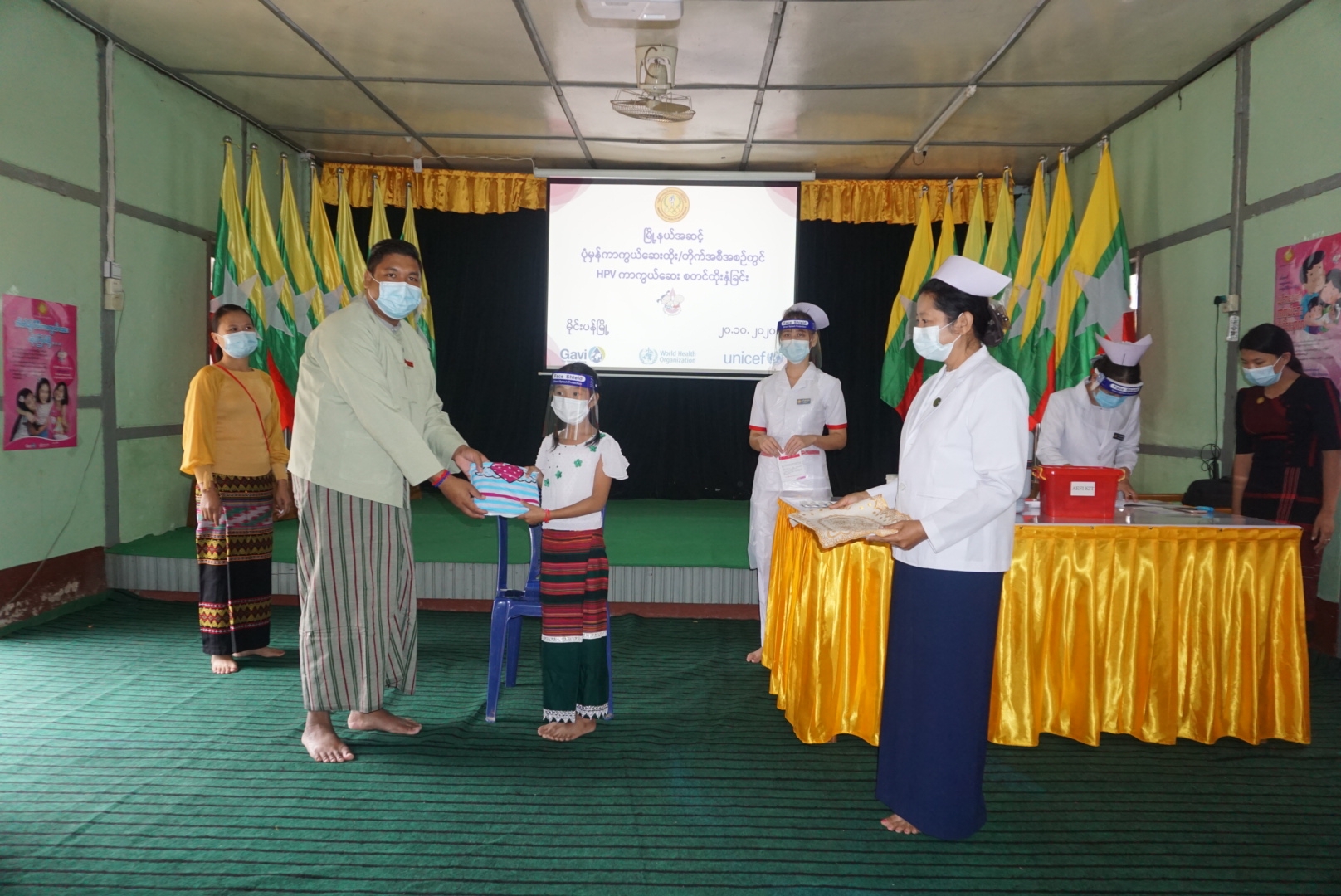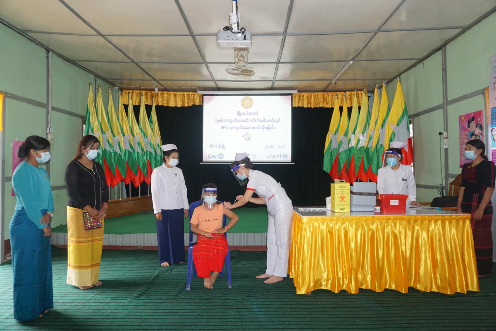 ရှမ်းပြည်နယ်(တောင်ပိုင်း)၊ လင်းခေးခရိုင်၊ မိုင်းပန်မြို့နယ်၊ အထွေထွေအုပ်ချုပ်ရေးဦးစီးဌာန၊ နမ့်ပန်ခန်းမ အတွင်းတွင် ယနေ့ နေ့လယ် (၁) နာရီအချိန်က မြို့နယ်အတွင်းရှိ အသက် (၉) နှစ် မှ (၁ဝ) နှစ်အထိ မိန်းကလေး (၅) ဦးကို အိတ်ချ်ပီဗီ(HPV) ကာကွယ်ဆေး စတင်ထိုးနှံပေးခဲ့ ကြောင်း သိရသည်။