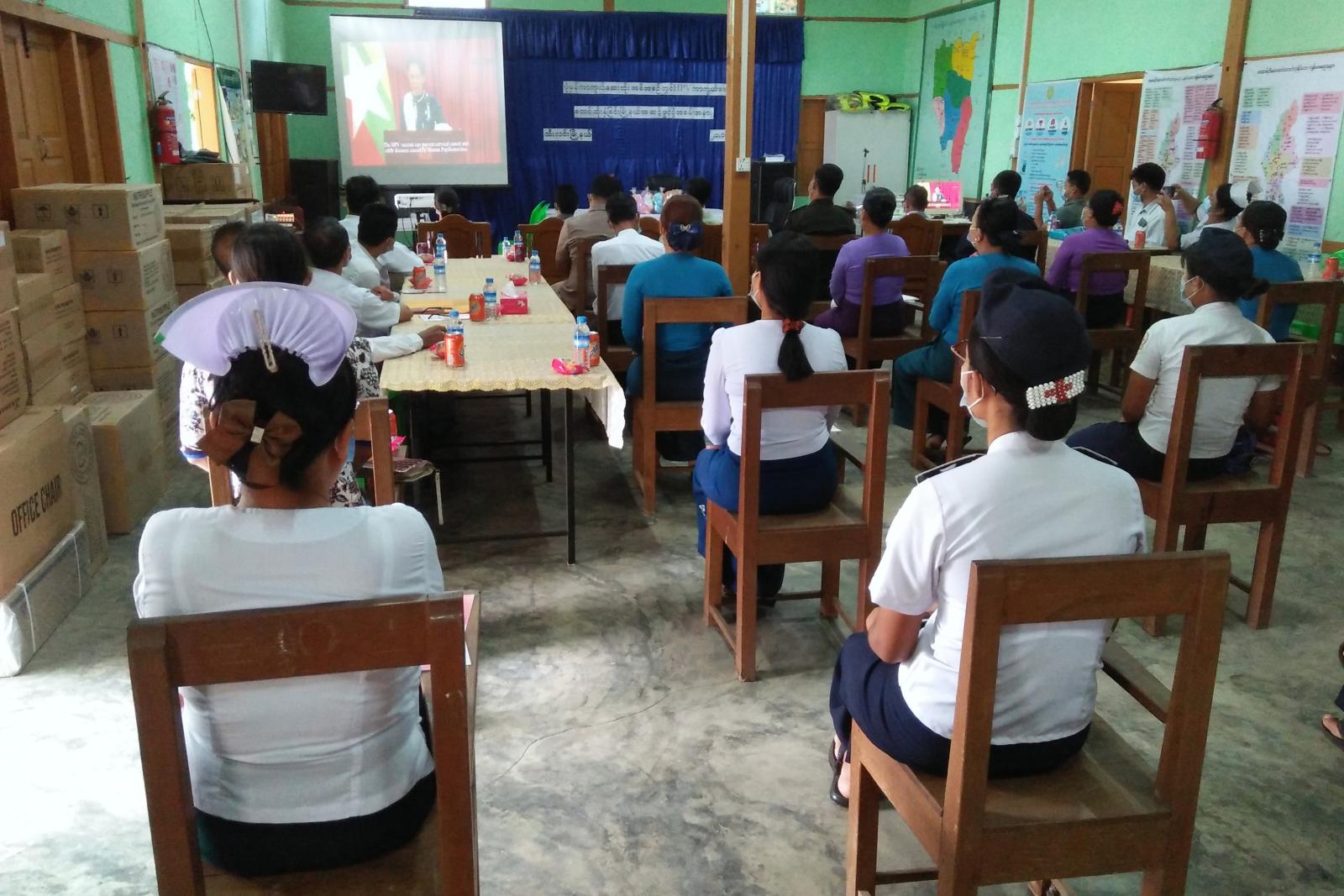 ဖွင့်ပွဲအခမ်းအနားတွင် ဒုတိယ မြို့နယ်အုပ်ချုပ်ရေးမှူး ဦးရဲမင်းထွန်းနှင့်ဌာနဆိုင်ရာ အကြီးအကဲ များ၊ ကျန်းမာရေးဝန်ထမ်းများ တက်ရောက်ကြပြီး နိုင်ငံတော်၏ အတိုင်ပင်ခံပုဂ္ဂိုလ် ဒေါ်အောင်ဆန်းစုကြည်၏ အဖွင့်မိန့်ခွန်း မှတ်တမ်း ဗီဒီယို၊ ကျန်းမာရေးနှင့် အားကစားဝန်ကြီး ဌာန ပြည်ထောင်စုဝန်ကြီး ဒေါက်တာမြင့်ထွေး၏ ပုံမှန်ကာကွယ်ဆေးထိုး အစီအစဉ်တွင် HPV ကာကွယ်ဆေး စတင်ထည့်သွင်းခြင်းလုပ်ငန်းနှင့် ပတ်သက်၍ ရှင်းလင်းပြောကြားသည့် မှတ်တမ်းဗီဒီယိုနှင့် ပညာပေးဗီဒီယို မှတ်တမ်းများကို ပြသသည်။