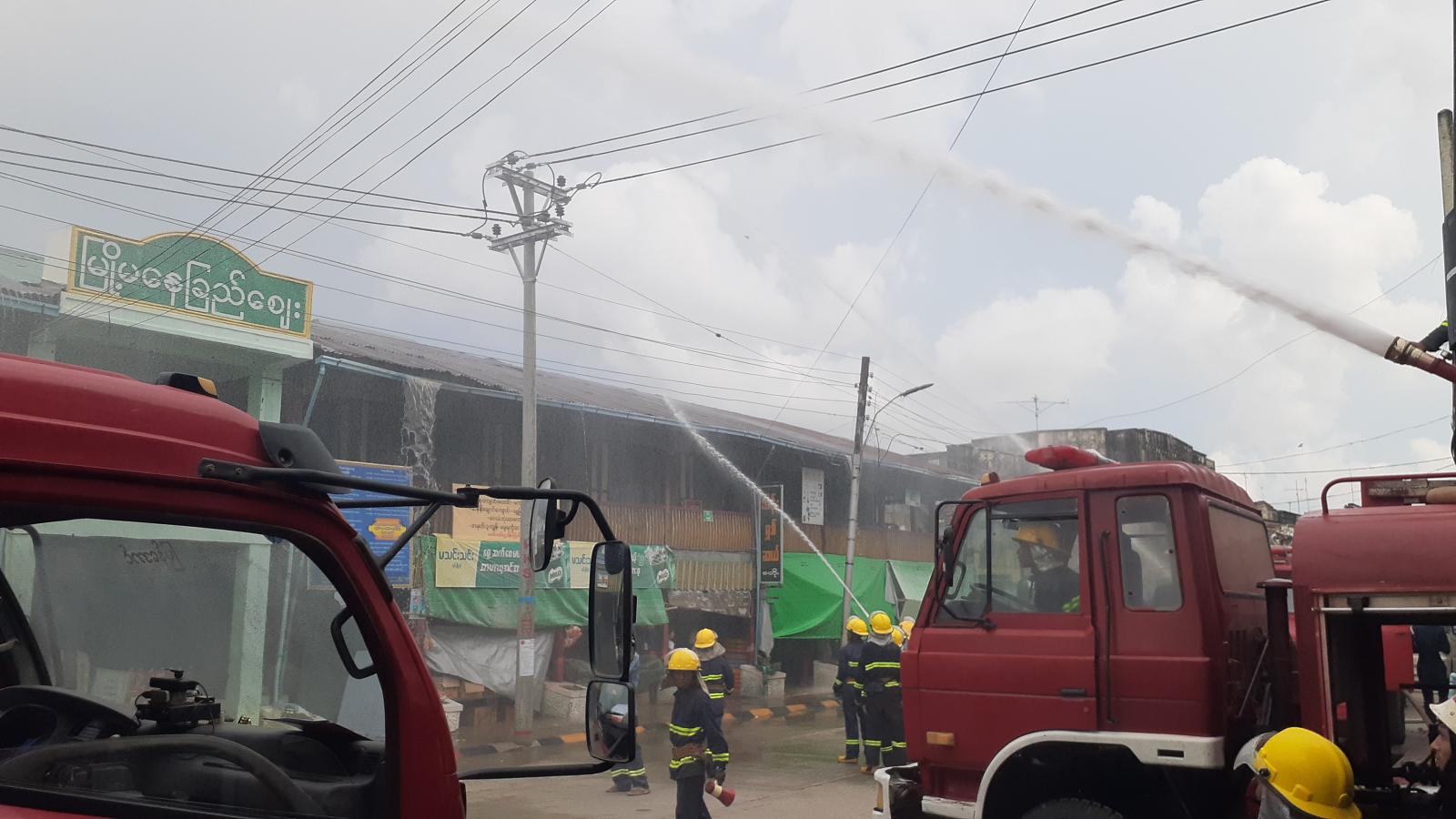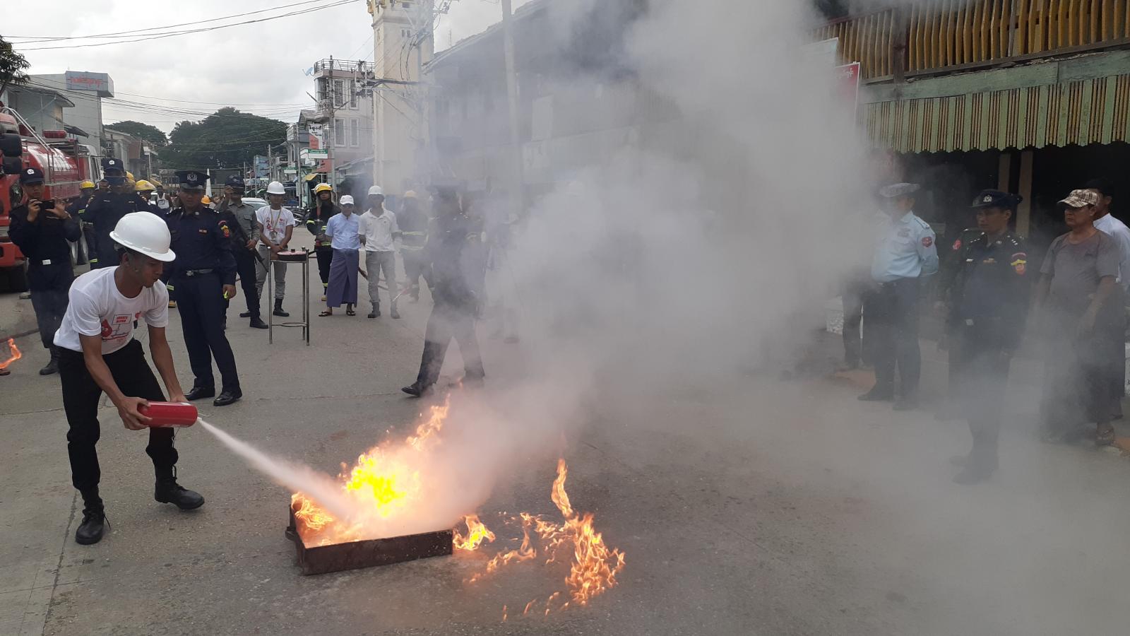 မြန်အောင်မြို့မနေခြည်ဈေး မီးဘေးကြိုတင်ကာကွယ်ရေး သရုပ်ပြဇာတ်တိုက်လေ့ကျင့်ခြင်းကို မြို့နယ်မီးသတ်ဦးစီးဌာနမှ မီးသတ်ဆေးဘူးဖြင့်မီးငြှိမ်းသတ်ခြင်း၊ Gas မီးငြှိမ်းသတ်ခြင်း၊ အသီးအရွက်ဆီမီးလောင်မှု ငြှိမ်းသတ်ခြင်း၊ ဆီမီးလောင်မှု ငြှိမ်းသတ်ခြင်းတို့ကို လက်တွေ့သရုပ်ပြ၍ မြို့နယ်မီးသတ်ဦးစီးဌာနမှ မီးသတ်ယာဉ်(၂)စီး၊ ဒေသပိုင်မီးသတ်ယာဉ်(၂)စီး၊အမှတ်(၂) ရပ်ကွက် မီးသတ်ယာဥ်(၁)စီး၊ ပါရမီလူမှုကူညီရေးအသင်းမှ ရေသယ်ယာဉ်တစ်စီး၊ မေတ္တာရှင်လူမှုကူညီရေးအသင်း လူနာတင်ယာဥ် (၁)စီးတို့ဖြင့် စျေးမီးငြှိမ်းသတ်ခြင်း သရုပ်ပြဇာတ်တိုက်လေ့ကျင့်ခဲ့ကြသည်။