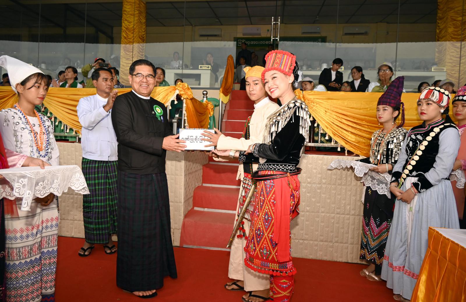 ယင်းနောက် ပြည်နယ်ဝန်ကြီးချုပ်နှင့် တာဝန်ရှိသူများက လေ့ကျင့်မှုအကောင်းဆုံးကျောင်းဆုများ၊ ကာယ လေ့ကျင့်ခန်း အတွဲ(၃)လေ့ကျင့်မှု အကောင်းဆုံးဆု၊ မြန်မာ့သိုင်း လေ့ကျင့်မှုအကောင်းဆုံးဆု၊ ကဗျာလွတ် အကလေ့ကျင့်မှု အကောင်းဆုံးကျောင်းဆုများနှင့် လေ့ကျင့်မှုအကောင်းဆုံးဆုရ မြစ်ကြီးနားမြို့နယ် တို့အား ဂုဏ်ပြုဆုများကို အသီးသီးပေးအပ်ချီးမြှင့်ခဲ့ကြပြီး အားကစားအသင်းများက ပြည်နယ် ဝန်ကြီးချုပ်အား စစ်ကြောင်းပုံဖြင့် အလေးပြု၍ ကွင်းအတွင်းမှ ထွက်ခွာခဲ့ကြသည်။