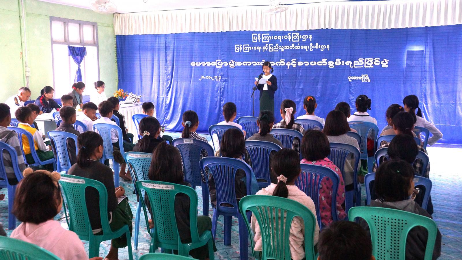 ဟောပြောပွဲတွင် ခရိုင်ပြန်ကြားရေးနှင့်ပြည်သူ့ဆက်ဆံရေးဦးစီးဌာန ခရိုင်ဦးစီးမှူး ဒေါ်ခင်သူဇာက “လူငယ်နှင့်ရည်မှန်းချက်” ခေါင်းစဉ်ဖြင့် စာဖတ်ရှိန်မြှင့်တင်ရေးအတွက် အသိပညာပေး ဟောပြောပြီး ပြိုင်ပွဲတွင် လိုက်နာရမည့် စည်းမျဉ်းစည်းကမ်းများနှင့် အမှတ်ပေးစည်းမျဉ်းများကို ရှင်းလင်း ပြောကြားသည်။