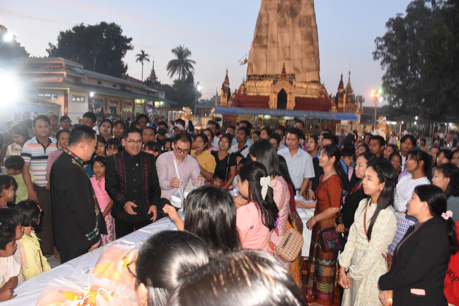 ရှေးဦးစွာ ပြည်နယ်ဝန်ကြီးချုပ် ဦးခက်ထိန်နန်နှင့် ဇနီးဒေါ်နန်ဆိုင်း၊ ပြည်နယ်တရားလွှတ်တော် တရားသူကြီးချုပ်နှင့်ဇနီး၊ အားကစားနှင့်လူငယ်ရေးရာဝန်ကြီးဌာန၊ ဒုတိယဝန်ကြီး ဦးဇင်မင်းထက်၊ ပြည်နယ်ဝန်ကြီးများနှင့် ၎င်းတို့၏ဇနီးများ၊ ဌာနဆိုင်ရာတာဝန်ရှိသူများသည် မြစ်ကြီးနားမြို့ပေါ်ရှိ ရှေးဟောင်းသမိုင်းဝင် လောကမာန်အောင်ဆုတောင်းပြည့်စေတီတော်သို့ သွားရောက်ပြီး စေတီတော်၌ ပန်း၊ ရေချမ်း၊ ဆီမီးပူဇော်၍ ကုသိုလ်ကောင်းမှုပြုသူများအား စတုဒီသာဖြင့် ဧည့်ခံကျွေးမွေးခဲ့ကြသည်။