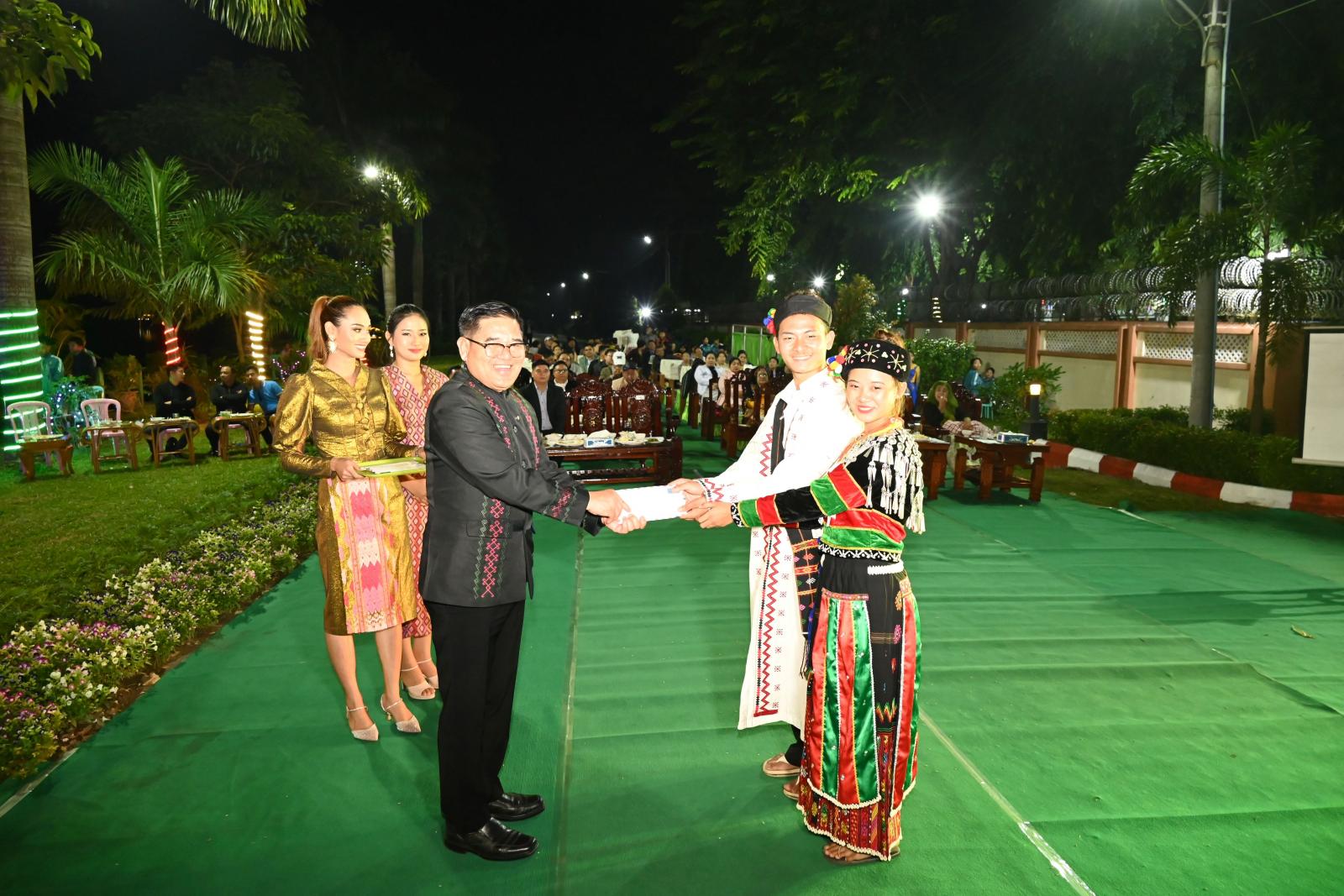 ထို့နောက် တန်ဆောင်တိုင်ပွဲတော် အခမ်းအနားကို ကမ်းနားလမ်း၌ ဆက်လက်ကျင်းပပြုလုပ်ရာ တိုင်းရင်းသားရိုးရာ အကအလှများ၊ ဒိုးပတ်အကအဖွဲ့နှင့် ဒေသခံတိုင်းရင်းသားအဆိုတော်များ၏ သီဆိုကပြ ဖျော်ဖြေမှုကို ကြည့်ရှုအားပေးခဲ့ကြပြီး ပြည်နယ်ဝန်ကြီးချုပ်နှင့် တာဝန်ရှိသူများက ဂုဏ်ပြု ချီးမြှင့်ငွေများကို ချီးမြှင့်ပေးအပ်ခဲ့ကြောင်း သိရသည်။