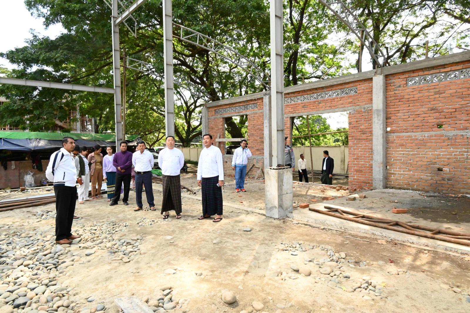 အလားတူ အဆိုပါကွင်းအတွင်း ၂၀၂၃-၂၀၂၄ ဘဏ္ဍာရေးနှစ် ပြည်နယ်ဘဏ္ဍာရန်ပုံငွေကျပ် (၃၉၂)သန်းဖြင့် တည်ဆောက်လျက်ရှိသည့် (၁၂၀×၉၀×၃၅)ပေရှိ ပိုက်ကျော်ခြင်းအားကစားရုံ တည်ဆောက်နေမှုကိုလည်းကောင်း၊ ရေကူးကန်အနီး ပြည်နယ်ဘဏ္ဍာရန်ပုံငွေကျပ် (၃၉၆ ဒဿမ ၄၀၀)ဖြင့် အကောင်အထည်ဖော် တည်ဆောက်လျက်ရှိသည့် (၉၀ × ၃၀ × ၃၆)ပေရှိ အားကစားသမားများနားနေဆောင် (၃)ထပ် RC အဆောက်အအုံသစ် တည်ဆောက်နေမှုများကိုလည်းကောင်း လှည့်လည့်ကြည့်ရှုစစ်ဆေးခဲ့ကြပြီး ဒုတိယဝန်ကြီးက အဆောက်အဦသစ်များအား အားကစားနည်းအလိုက် သတ်မှတ်စံနှုန်းများနှင့်အညီ အရည်အသွေးအဆင့်အတန်းပြည့်မီစွာ တည်ဆောက်နိုင်ရေး၊ ဘဏ္ဍာရေးစည်းမျဉ်းစည်းကမ်းများနှင့်အညီ အချိန်မီပြီးစီးအောင် တည်ဆောက်နိုင်ရေး လိုအပ်သည်များကို တာဝန်ရှိသူများအား မှာကြားခဲ့သည်။