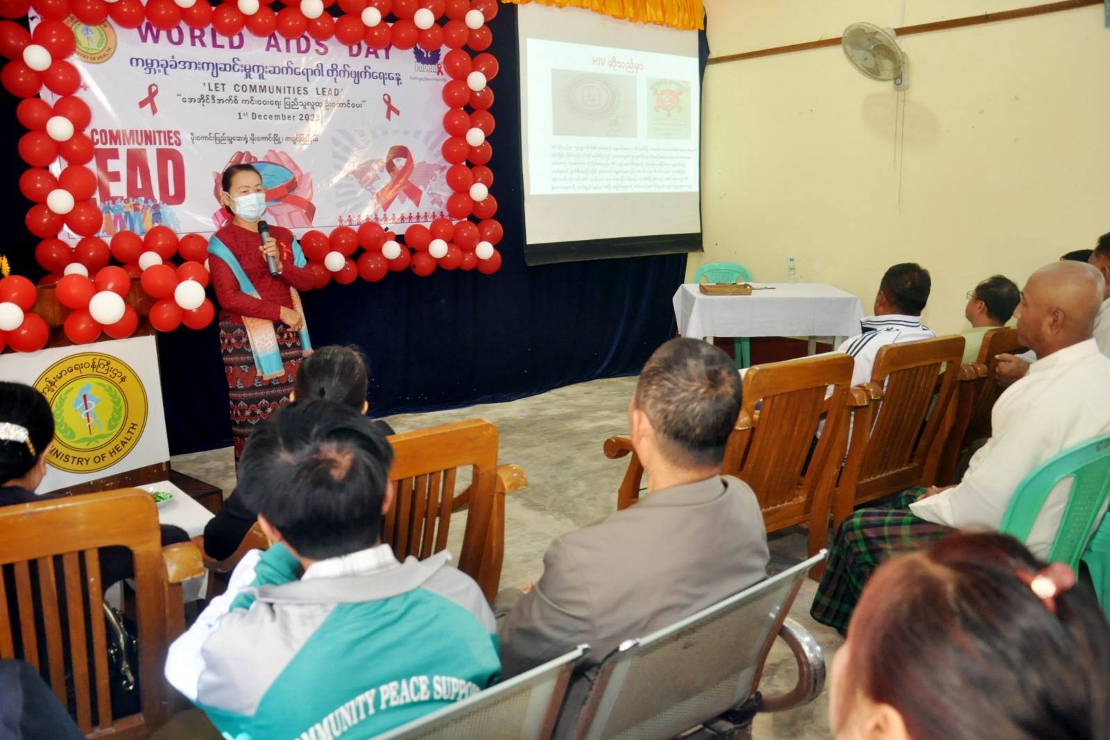 ၂၀၂၃ ခုနှစ် ကမ္ဘာ့ AIDS ရောဂါ တိုက်ဖျက်ရေးနေ့၏ “Let Communities Lead” အေအိုင်ဒီအက်စ် ကင်းဝေးရေး ပြည်သူလူထုဦးဆောင်ပေး ဆောင်ပုဒ်ဖြင့် ကမ္ဘာ့ခုခံအားကျဆင်းမှု ကူးစက်ရောဂါ တိုက်ဖျက်ရေးနေ့ အခမ်းအနားကို ကချင်ပြည်နယ်၊ မိုးညှင်းခရိုင်၊ မိုးကောင်းမြို့နယ် ပြည်သူ့ဆေးရုံ အစည်းအဝေးခန်းမ၌ ယနေ့နံနက် (၁၀)နာရီတွင် ကျင်းပသည်။