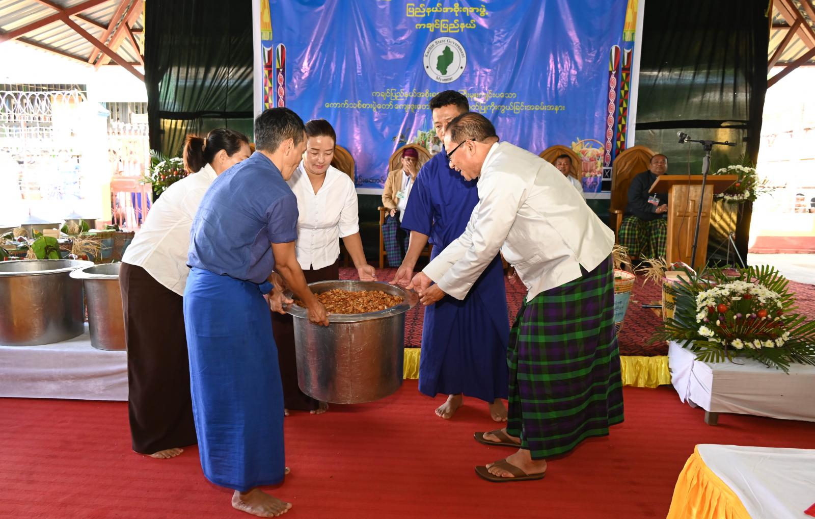 အခမ်းအနားတွင် ပြည်နယ်သယံဇာတရေးရာဝန်ကြီး ဦးတိန့်ဆောင်က ရိုးရာကောက်သစ်စား ကျေးဇူးတော်ချီးမွမ်းခြင်း အစီအစဉ်ကျင်းပပြုလုပ်ပေးရခြင်းနှင့် စပ်လျဉ်း၍ ရှင်းလင်းပြောကြားပြီး အကျဉ်းသား/အကျဉ်းသူများအား ပြည်နယ်အစိုးရအဖွဲ့ကိုယ်စား ဆုတောင်းမေတ္တာပို့သပေးသည်။