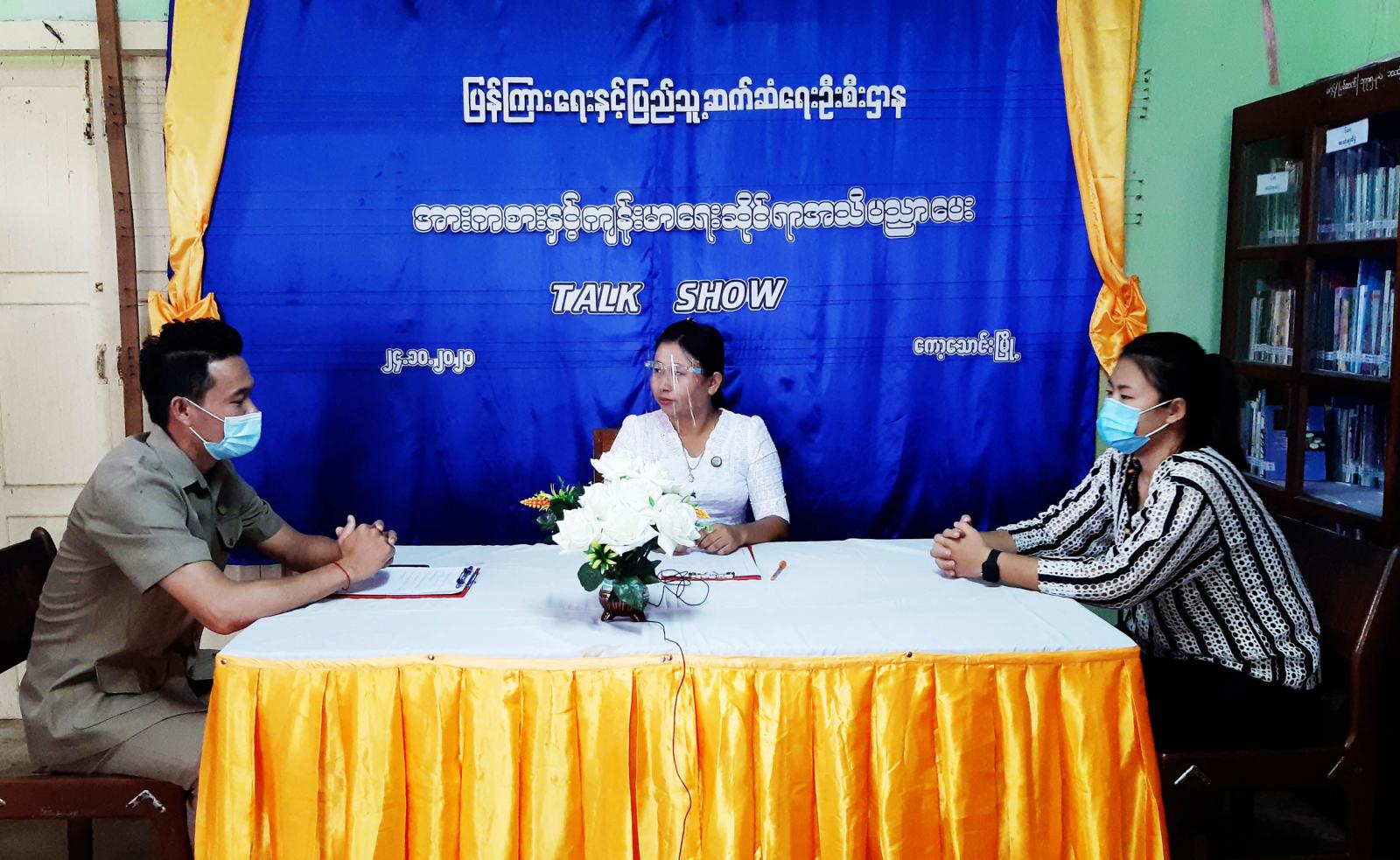 ပြန်ကြားရေးနှင့်ပြည်သူ့ဆက်ဆံရေးဦးစီးဌာနနှင့် ကော့သောင်းမြို့နယ် အားကစားနှင့်ကာယပညာဦးစီး ဌာနတို့ ပူးပေါင်းကာ အားကစားနှင့်ကျန်းမာရေးဆိုင်ရာ အသိပညာပေးဆွေးနွေးပွဲ Talk Show အစီအစဉ်တစ်ရပ်ကို အွန်လိုင်း တင်ဆက်မှုအစီအစဉ်ဖြင့် ယမန်နေ့ မွန်းလွဲပိုင်းက ကော့သောင်းခရိုင် ပြန်ကြားရေးနှင့်ပြည်သူ့ဆက်ဆံရေး ဦးစီးဌာန လူထုအခြေပြုဗဟိုဌာနခန်းမမှာ ဆွေးနွေးရိုက်ကူးခဲ့ ကြောင်း သိရသည်။