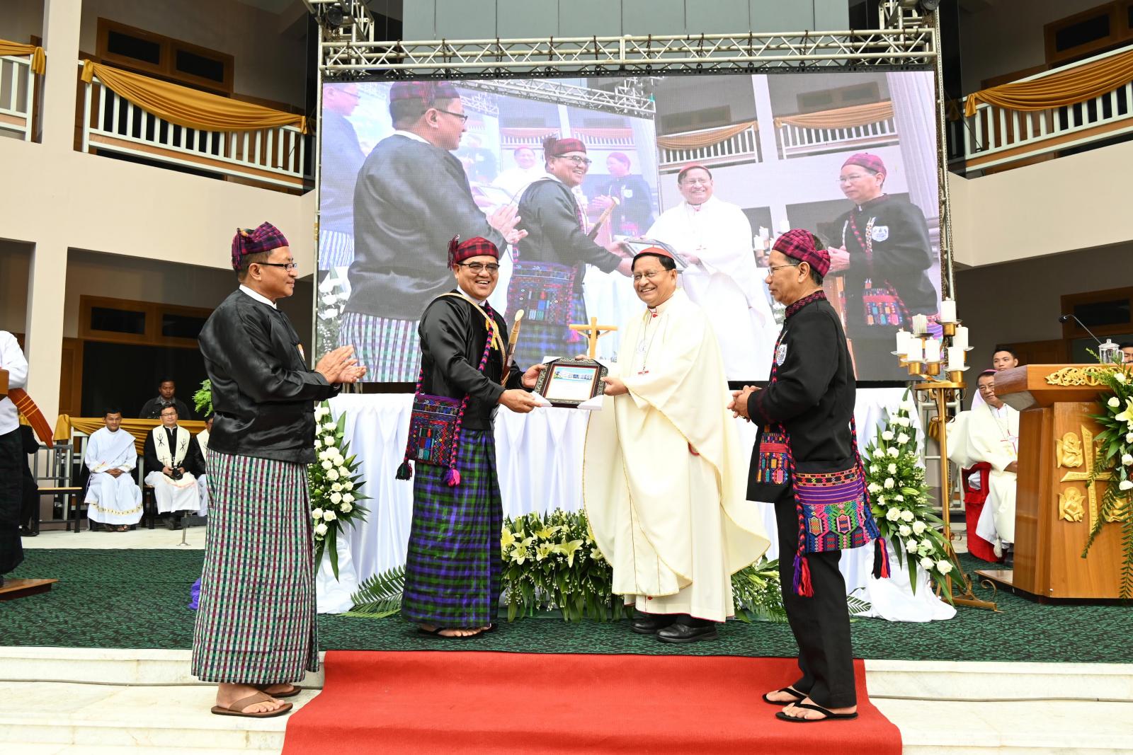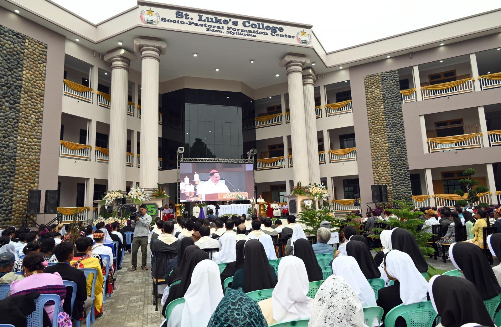 ယင်းနောက် ကျောင်းဆောင်သစ်ဖွင့်ပွဲအတွက် ကောင်းချီးပေးဆုတောင်းပွဲကို ကျင်းပပြုလုပ်ခဲ့ကြပြီး ဂိုဏ်းချုပ်ဆရာတော် ကာဒီနယ်ချားလ်ဘိုက ကျောင်းဆောင်သစ် တည်ဆောက်ရာတွင် ရေရရှိရေးအတွက် လှူဒါန်းပေးခဲ့သည့် ပြည်နယ်ဝန်ကြီးချုပ်အား ရိုးရာပလိုင်း၊ လွယ်ဓား၊ ခေါင်းပေါင်းနှင့် ကျေးဇူးတင် ဂုဏ်ပြုမှတ်တမ်းလွှာများကိုလည်းကောင်း၊ စေတနာရှင်၊ အလှူရှင်များအား လည်းကောင်း ဂုဏ်ပြုမှတ်တမ်းလွှာများကို အသီးသီးပေးအပ်ချီးမြှင့်ခဲ့ကြပြီး ဓမ္မတေးသီချင်း သီဆိုချီးမွမ်းခြင်း၊ ဆုတောင်းမေတ္တာပို့သခြင်းတို့ကို ဆောင်ရွက်ခဲ့ကြသည်။