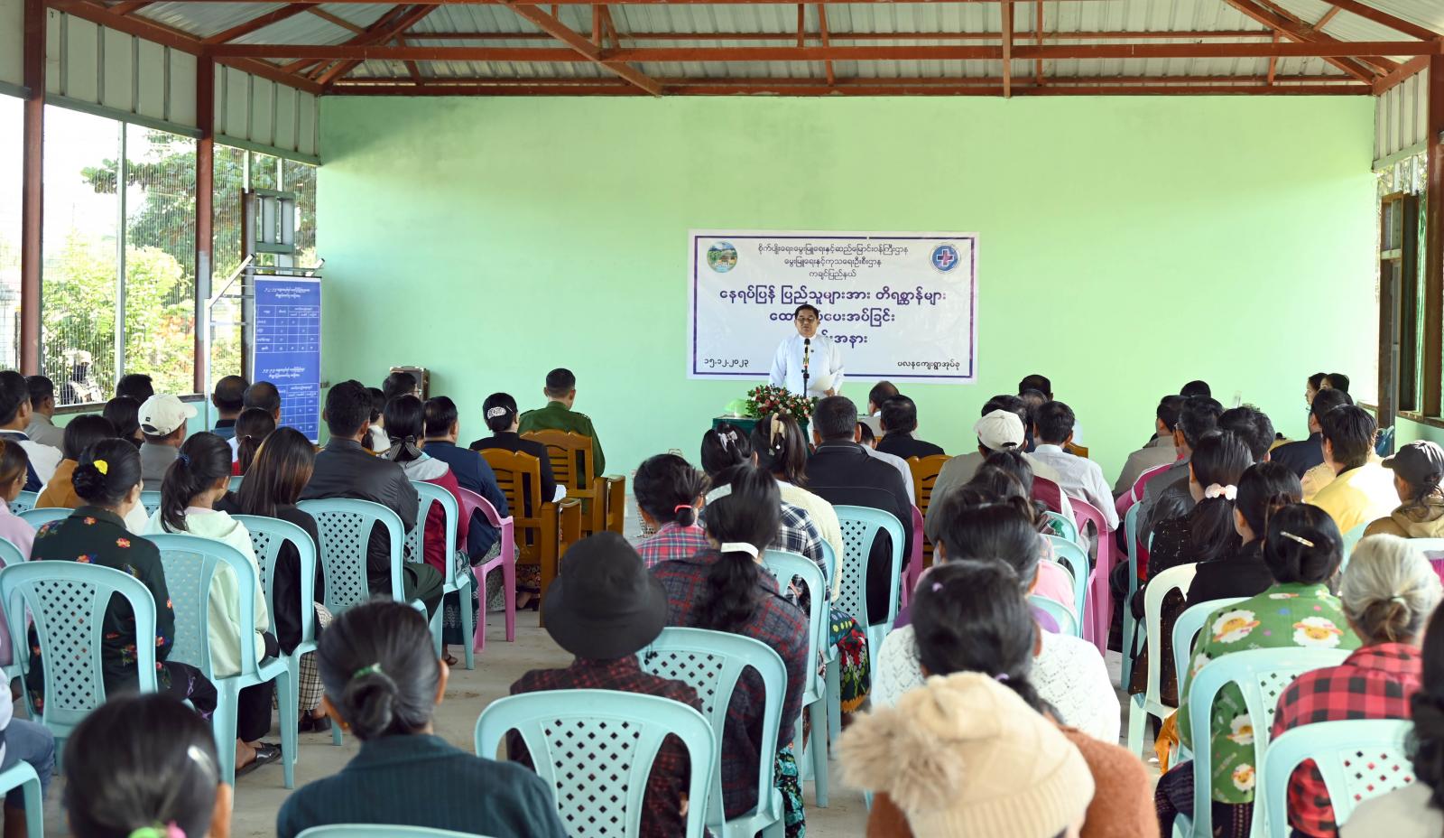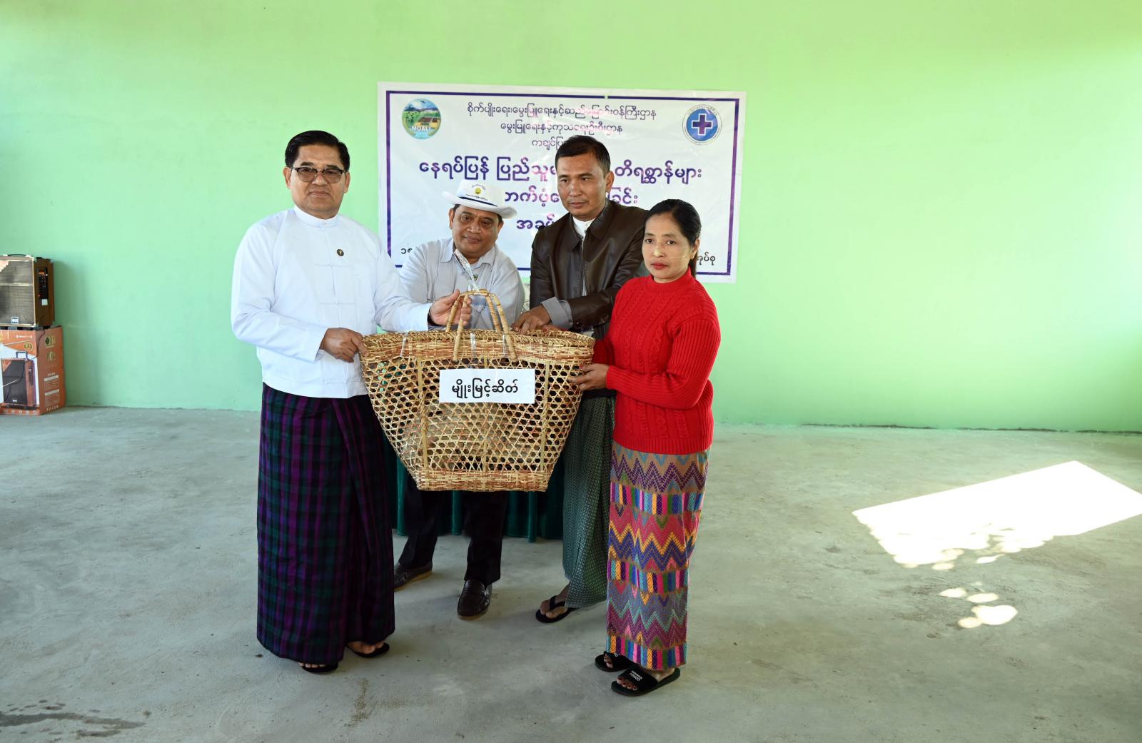 အခမ်းအနားတွင် ပြည်နယ်ဝန်ကြီးချုပ်က နိုဝင်ဘာလအတွင်းက ပလနကျေးရွာတွင် ပြုလုပ်ခဲ့သော နိုင်ငံတော်အဆင့် တိရစ္ဆာန်ကောင်ရေစာရင်းကောက်ယူရေးဆိုင်ရာတွေ့ဆုံပွဲတွင် ဒေသခံများ၏ တောင်းဆိုချက်အရ မွေးမြူရေးတိရစ္ဆာန်များကို ယနေ့ လာရောက်ထောက်ပံ့ရခြင်းဖြစ်ကြောင်း၊ မိမိအနေဖြင့် ဒေသခံများ တစ်ပိုင်တစ်နိုင် စိုက်ပျိုးရေးခြံများ စိုက်ပျိုးသကဲ့သို့ မွေးမြူရေးလုပ်ငန်းကို လည်း တစ်ပိုင်တစ်နိုင် ဆောင်ရွက်ခြင်းဖြင့် ဒေသတွင်း အသားနှင့် ဥစားသုံးမှု ပိုမိုဖူလုံစွာ စားသုံး လာနိုင်မည်ဖြစ်ကြောင်း၊ မွေးမြူရေးလုပ်ငန်းကို မိရိုးဖလာနည်းဖြစ်သော လွှတ်ကြောင်း စနစ်အစား စနစ်တကျ ခြံလှောင်၍ မွေးမြူပါက ပိုမိုအကျိုးဖြစ်ထွန်းမည်ဖြစ်ကြောင်းကို အလေးထား မှာကြားလိုပါကြောင်း တိုက်တွန်းပြောကြားသည်။