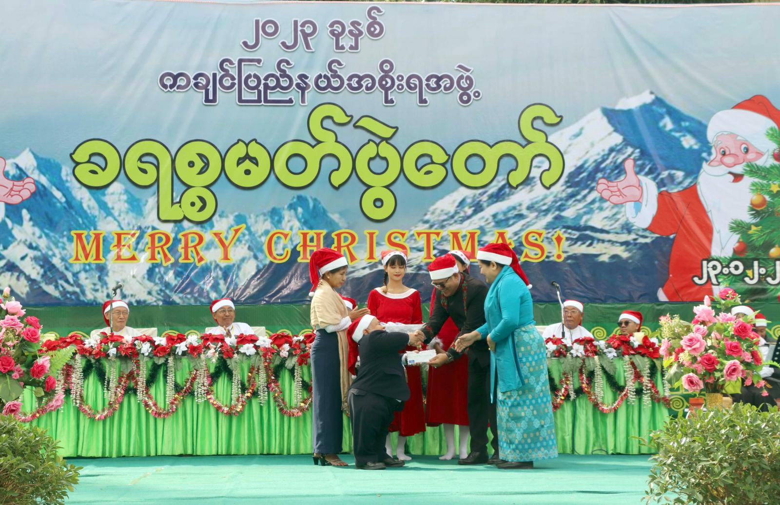 ဆက်လက်၍ ဘုန်းတော်ကြီး ဖာသာဒေါက်တာယုံဝါ၊ သိက္ခာတော်ရဆရာများ၏ ဦးဆောင်မှုနှင့်အတူ ဝတ်ပြုဆုတောင်းပွဲအစီအစဉ်အဖြစ် ကျမ်းစာဖတ်ခြင်း၊ ဓမ္မတေးသီချင်းသီဆိုဆက်ကပ်ခြင်း၊ ပြည်နယ်အထွေထွေအုပ်ချုပ်ရေးဦးစီးဌာန ဝန်ထမ်းများက ခရစ္စမတ်ဓမ္မသံချပ်ရွတ်ခြင်း၊ ကောင်းချီးတောင်းခံခြင်း၊ ဓမ္မဒေသနာတော်ဟောကြားခြင်းတို့ကို ဆောင်ရွက်ခဲ့ကြရာ ပြည်နယ်ဝန်ကြီးချုပ်နှင့် ဇနီးတို့က ဘုန်းတော်ကြီးများနှင့် သိက္ခာတော်ရဆရာတို့အတွက် ခရစ္စမတ်လက်ဆောင်များကို ပေးအပ်လှူဒါန်းခဲ့သည်။