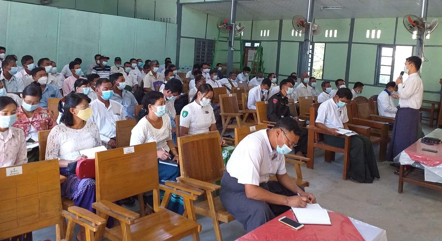 ရှေးဦးစွာ မြို့နယ်ပြည်သူ့ကျန်းမာရေးဦးစီးမှူး ဒေါက်တာစန်းယုကိုက မဲဆန္ဒရှင်များအတွက် ကိုဗစ်-၁၉ ရောဂါ ကြိုတင်ကာကွယ်ရေး နည်းလမ်းများနှင့်အညီလုပ်ဆောင်ကြရန်၊ ဒုတိယမြို့နယ်အုပ်ချုပ်ရေးမှူး ဦးအောင်ကိုလတ်က ရပ်ကွက်၊ ကျေးရွာအုပ်ချုပ်ရေးမှူးများ ပူးပေါင်းဆောင်ရွက်ကြရန်နှင့် ကြိုတင်ဆန္ဒမဲပေးနေချိန် အောက်တိုဘာလ ၂၉ ရက်နေ့မှစ၍ ဆန္ဒမဲပေးသူများ အနှောက်အယှက် မဖြစ်စေရေး စီမံဆောင်ရွက်ရန်၊ မြို့နယ်ရွေးကောက်ပွဲကော်မရှင်အဖွဲ့ခွဲ၊ အတွင်းရေးမှူး ဦးလှိုင်ဝင်းထွန်းက ပါတီစုံဒီမိုကရေစီ အထွေထွေရွေးကောက်ပွဲအောင်မြင်စွာ ကျင်းပနိုင်ရေးအတွက် အမျိုးသားရေးတာဝန် တစ်ရပ်အနေဖြင့် အထူးအလေးထားကြရန်၊ ထုတ်ပြန်ထားသည့် ဥပဒေ၊ နည်းဥပဒေနှင့်အညီ ဆောင်ရွက်ကြရန်၊ ဆန္ဒမဲပေးချိန်တွင် ဆန္ဒမဲပေးသူများ အနှောက်အယှက် ဖြစ်ပေါ်စေသည့် အသံချဲ့စက်ဖွင့်ခြင်း၊ ဆူညံအော် ဟစ်ခြင်းများ မရှိစေရေး၊ မဲပေးရာတွင် ပါတီအမှတ်တံဆိပ်ပါသော အိင်္ကျီ၊ အသုံးအဆောင်များ တပ်ဆင်ခြင်း၊ ယူဆောင်ခြင်း မပြုလုပ်ကြရန် စသည်တို့ကို ဆွေးနွေးပြောကြားခဲ့သည်။