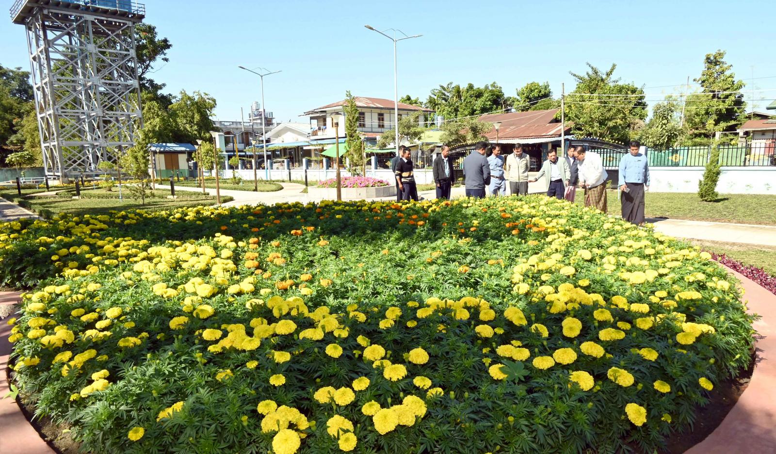 ယင်းနောက် ပြည်နယ်ဝန်ကြီးသည် ဝိုင်းမော်မြို့အတွင်းရှိ ဧရာမော်ပန်းခြံအတွင်း မြေယာ ရှုခင်းပြုပြင်ပြီး အလှပန်းပင်များ စိုက်ပျိုးထားရှိမှု၊ ကလေးကစားကွင်းငယ်နှင့် ရေပန်းဥယျာဉ်များ ဆောင်ရွက်ထားရှိမှုနှင့် အဆိုပါပန်းခြံအတွင်း ၂၀၂၃-၂၀၂၄ ဘဏ္ဍာနှစ်အတွင်း ဆက်လက် အလှပြုပြင်ဆောင်ရွက်သွားမည့် လုပ်ငန်းများကို လှည့်လည်ကြည့်ရှုစစ်ဆေးခဲ့ကြသည်။