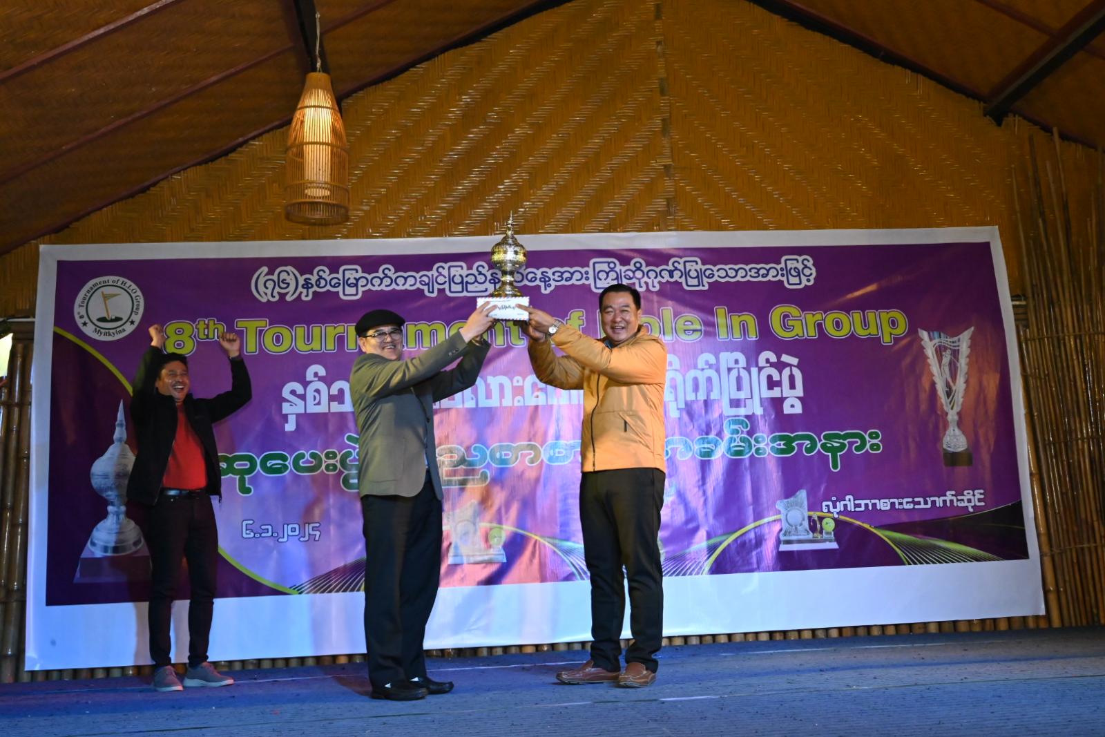 ထို့အပြင် ပြည်နယ်ဝန်ကြီးချုပ်သည် ပြည်နယ်ဝန်ကြီးများနှင့် အတူ ယမန်နေ့ ညနေပိုင်းကလည်း (၇၆)နှစ်မြောက် ကချင်ပြည်နယ်နေ့ကို ကြိုဆိုဂုဏ်ပြုသောအားဖြင့် ဂေါက်သီးရိုက်ပြိုင်ပွဲ ဆုချီးမြှင့်ပွဲ အခမ်းအနားသို့ တက်ရောက်ပြီး ပြည်နယ်ဝန်ကြီးချုပ်က တံခွန်စိုက်ဆုဖလားနှင့် Hole In One ဆုရရှိသူများ ဂုဏ်ပြုဆုဖလားနှင့် ဂုဏ်ပြုချီးမြှင့်ငွေများကို လည်းကောင်း၊ ပြည်နယ်ဝန်ကြီးများက ဒုတိယဆုရရှိသူများ၊ ရိုက်ချက် အနည်းဆုံးနှင့် အဝေးရိုက်ချက်နှင့် သတ်မှတ်ချက်အလိုက် ဆုရရှိသူများအား ဆုတံဆိပ်နှင့် ဂုဏ်ပြုချီးမြှင့်ငွေများကို အသီးသီးပေးအပ်ချီးမြှင့်ခဲ့ ကြကြောင်း သိရသည်။
