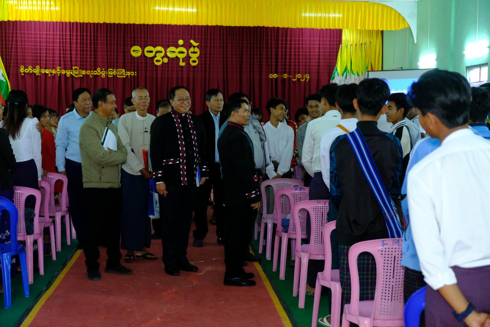 ယင်းနောက် ပြည်ထောင်စုဝန်ကြီးက ကျောင်းသား/ ကျောင်းသူများအား ပညာသင်ကြားတဲ့အခါတွင် ဘဝအတွက်အကျိုးရှိအောင် ပညာကို စိတ်ဝင်တစား အလေးထားသင်ကြားကြရန် လိုကြောင်း၊ သို့မှသာ အောင်မြင်သည့် လူငယ်လူရွယ်များ ဖြစ်လာမည် ဖြစ်ပါကြောင်း၊ ဒါ့အပြင် ကျောင်းသား/ ကျောင်းသူများအတွက် နိုင်ငံတော်မှ လစဉ် (၃၀၀၀၀/-)ကျပ် ထောက်ပံ့ပေးနေပါကြောင်း၊ လိုအပ်သည့် ကျောင်းစရိတ်ကို မိဘများက ထောက်ပံ့ပေးနေသည့်အတွက် မိမိတို့မိဘများကို ကိုယ်ချင်းစာပြီး အလေးအနက်ထား ကြိုးစားကြရမည်ဖြစ်ကြောင်း၊ ပညာရပ်များကို ကျွမ်းကျင်အောင်လေ့လာသင်ယူပြီး ပညာရှင်များ ဖြစ်လာပါက အများပြည်သူကြားတွင် လေးစားစွာဆက်ဆံခံရမည်ဖြစ်ကြောင်း၊ ကျန်းမာရေးကို ဂရုစိုက်နေထိုင်ကြရေး၊ ယုံကြည်ရာ ဘာသာတရားအဆုံးအမကို အလေးထားလိုက်နာပြီး မိမိနိုင်ငံ့၊ မိမိရပ်/ရွာကို အကျိုးပြုသည့် သား/သမီးကောင်းများ ဖြစ်လာရန် ကြိုးစားရမည်ကြောင်း မှာကြားခဲ့သည်။