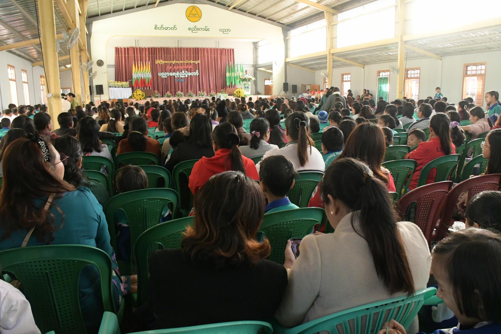 ကချင်ပြည်နယ်၊ မြစ်ကြီးနားမြို့ အခြေခံပညာလေ့ကျင့်ရေးအလယ်တန်းကျောင်း ပညာအားမာန်ခန်းမ၌ ၂၀၂၃-၂၀၂၄ ပညာသင်နှစ် မိဘ၊ ဆရာ ကျောင်းသားပညာရေးစုံညီပွဲတော်ကို ဇန်နဝါရီ ၁၂ ရက် နံနက် ၉ နာရီခွဲက ကျင်းပပြုလုပ်ရာ ကျောင်းအုပ်ဆရာကြီး ဦးအားဖူက စုံညီပွဲတော်ကျင်းပရသည့် ရည်ရွယ်ချက်များ ရှင်းလင်းပြောကြားသည်။