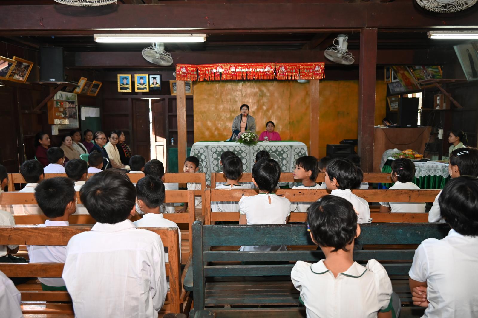 ထို့နောက် နိုင်ငံတော်စီမံအုပ်ချုပ်ရေးကောင်စီအဖွဲ့ဝင်နှင့် ပြည်နယ်ဝန်ကြီးချုပ်၏ဇနီးတို့က ကျောင်းအတွက် ထောက်ပံ့ငွေကျပ် ၁၀ သိန်းကို ထောက်ပံ့ပေးအပ်ရာ ကျေးဇူးတင်စကားပြန်လည်ပြောကြားပြီး ကျောင်းသား ကလေးများက တေးသီချင်းများဖြင့် သီဆိုဖျော်ဖြေခဲ့ ကြသည်။