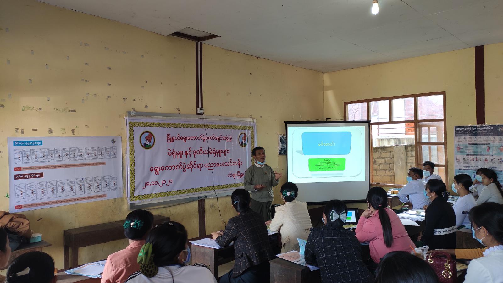 အဆိုပါသင်တန်းတွင် ရွေးကောက်ပွဲဥပဒေ၊ နည်းဥပဒေများ၊ လုပ်ငန်းလမ်းညွှန်ချက်များ၊ မဲရုံမှူး၊ ဒုတိယမဲရုံမှူး၏ တာဝန်နှင့်လုပ်ပိုင်ခွင့်များ၊ မဲပေးရက်တွင် လိုက်နာဆောင်ရွက်ရမည့် ကိစ္စရပ်များ၊ ခိုင်လုံမဲ၊ပယ်မဲ ရွေးချယ်မှုများ၊ မဲရုံပိတ်ခြင်း၊ မဲရေတွက်ခြင်းနှင့်လုံခြုံရေး ကိစ္စရပ်များ၊ မဲရုံမှူး၊ ဒုတိယမဲရုံမှူးနှင့် မဲရုံအဖွဲ့ဝင်များ အသုံးပြုရမည့် ပုံစံများကို ခရိုင်ရွေးကောက်ပွဲကော်မရှင် ဥက္ကဋ္ဌ ဦးသန်းတင်နှင့်အဖွဲ့ဝင်များမှ သင်ကြားပို့ချပေးလျက်ရှိသည်။