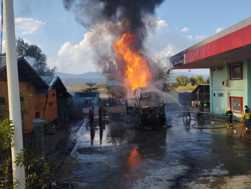 ဖြစ်စဉ်မှာ မိုးကောင်းမြို့နယ် ပင့်သာကျေးရွာနေ ဦးတင်မြင့်(၅၃)နှစ်၏ Top Star စက်သုံးဆီဆိုင်တွင် ယာဉ်မောင်းဦးသန့်ဇင်ဖြိုး(၂၅)နှစ်နှင့် ယာဉ်နောက်လိုက် ဦးကျော်ကို(၂၅)နှစ် မောင်းနှင်သော ယာဉ်အမှတ် 4S/5190 SHAN MAM ယာဉ်အမျိုးအစား(၂၂)ဘီးတွဲကားပေါ်သို့ ဟွန်ဒါဆီပန့်စက်ဖြင့် ဆီဖလှယ်စဉ် ပလပ်ကွိုင်မီးကူး၍ ဟွန်ဒါဆီပန့်စက်မှ စတင်မီးကူးစက်လောင် ကျွမ်းခဲ့ခြင်းဖြစ်ကြောင်း သိရသည်။