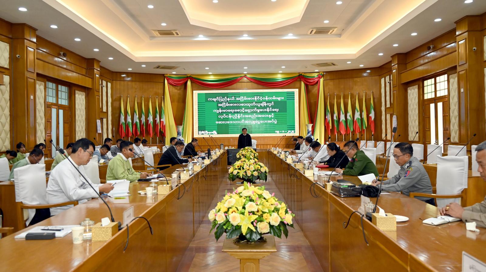 ယင်းနောက် ပြည်နယ်အစိုးရအဖွဲ့ အတွင်းရေးမှူး ဦးခင်မောင်လေးက ကျန်းမာရေးစောင့် ရှောက်မှုလုပ်ငန်းအစီအစဉ်အတွက် လိုအပ်သည့် အကူအညီများနှင့် စနစ်တကျ စီမံဆောင်ရွက်နိုင် ရေး ဦးစီးကော်မတီနှင့် ဆပ်ကော်မတီများ ဖွဲ့စည်းဆောင်ရွက်ထားရှိမှု အခြေအနေများကို လည်း ကောင်း၊ မြန်မာ့စီးပွားရေးဘဏ် မြစ်ကြီးနားဘဏ်ခွဲ ပြည်နယ်မန်နေဂျာက အငြိမ်းစားဝန်ထမ်းများ ပင်စာလစာထုတ်ပေးနေသည့် အခြေအနေများကို လည်းကောင်း၊ ပြည်နယ်ပြည်သူ့ကျန်းမာရေးနှင့် ကုသရေးဦးစီးဌာန ပြည်နယ်ဦးစီးမှူးက ကျန်းမာရေးစောင့်ရှောက်မှုလုပ်ငန်း ဆောင်ရွက်ရခြင်း၏ ရည်ရွယ်ချက်များနှင့် လုပ်ငန်းအစီအစဉ်များကိုလည်းကောင်း အသီးသီးရှင်းလင်းတင်ပြကြသည်။
