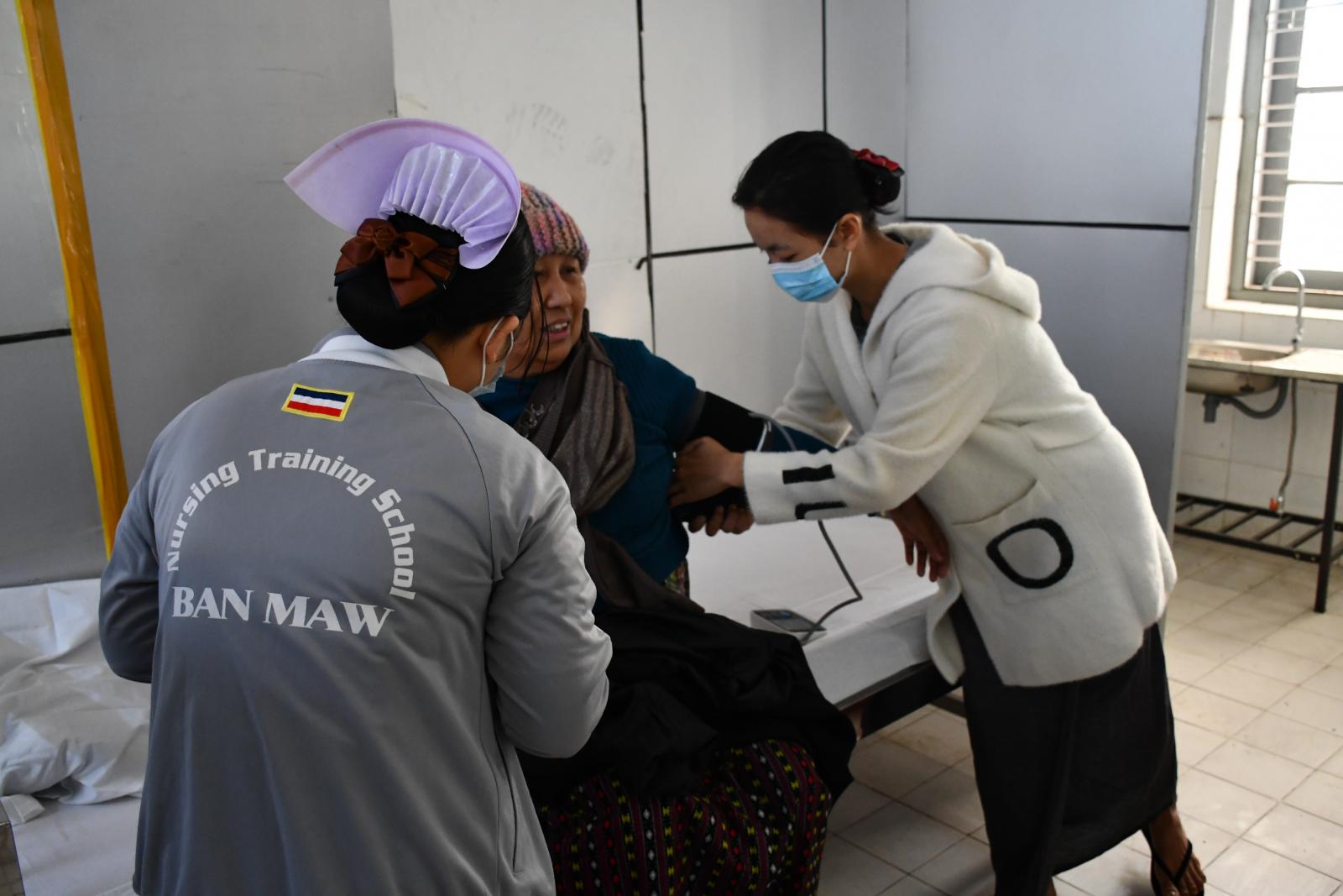 မြန်မာ့စီးပွားရေးဘဏ်ရှေ့၌ ဌာနဆိုင်ရာအသီးသီးမှ နိုင်ငံ့တာဝန်များကို ကျေပွန်စွာထမ်းဆောင်၍ ပင်စင်အမျိုးမျိုးဖြင့် ပင်စင်ထုတ်ယူရန်လာရောက်ကြသည့် နိုင်ငံ့ဝန်ထမ်းဟောင်းများ ပင်စင်ထုတ်ယူရန် စောင့်ဆိုင်းနေကြသည့် အငြိမ်းစားနိုင်ငံ့ဝန်ထမ်းများကို ခရိုင်စီမံအုပ်ချုပ်ရေးအဖွဲ့ ဒုခရိုင်အုပ်ချုပ်ရေးမှူးဦးသိန်းစိုး၊ မြို့နယ်စီမံအုပ်ချူပ်ရေးအဖွဲ့ဥက္ကဋ္ဌဦးအောင်ထွန်းတိုး၊ မြို့နယ် ရဲမှူးဇော်ဇော်တို့ ဦးဆောင်၍ ခရိုင်မြို့နယ်ဌာနဆိုင်ရာတာဝန်ခံများနှင့် ဗန်းမော်ခရိုင်ပြည်သူ့ ကျန်းမာရေးဦးစီးဌာန ဆေးရုံအုပ်ကြီးဒေါက်တာအောင်ကျော်စိုး အနီးကပ်ကြီးကြပ်မှုဖြင့် ခရိုင် ပြည်သူ့ဆေးရုံတွင် မြို့နယ်စီမံအုပ်ချူပ်ရေးအဖွဲ့ဝန်ထမ်းများနှင့် ရဲတပ်ဖွဲ့ဝင် အမျိုးသမီးများက အာဟာရဒါနများကျွေးမွေးခဲ့ကြပြီး ကြက်ခြေနီအသင်းအဖွဲ့နှင့် ကျန်းမာရေးဝန်ထမ်းများက ပင်စင် လာရောက်ထုတ်ယူကြသည့် အဘိုးအဘွားများအား အပူချိန်တိုင်းတာခြင်း၊ သွေးပေါင်ချိန်တိုင်းခြင်း၊ သွေးတိုး၊ ဆီးချို၊ သွေးချို တိုင်းတာပေးခြင်း လိုအပ်သည့်ကျန်းမာရေးစောင့်ရှောက်မှုများ ဆောင်ရွက် ပေးခဲ့ပြီး သွေးတိုး၊ ဆီးချိုကျဆေး စသည့် လိုအပ်သည့်ဆေးဝါးများအား အခမဲ့ထောက်ပံ့ပေးအပ်ခဲ့ ကြောင်း သိရသည်။