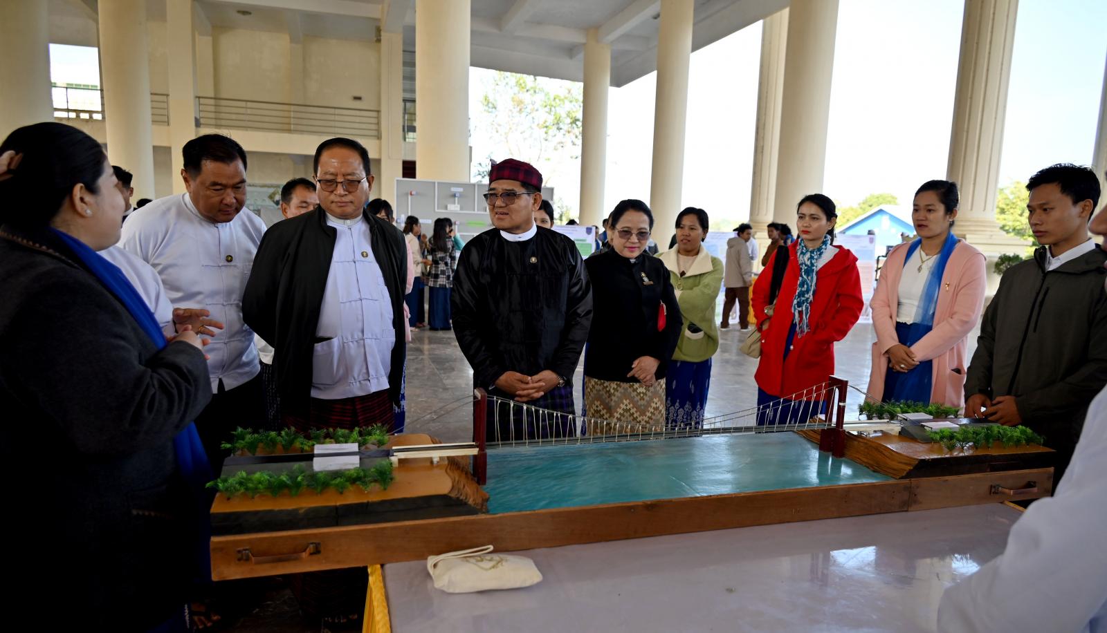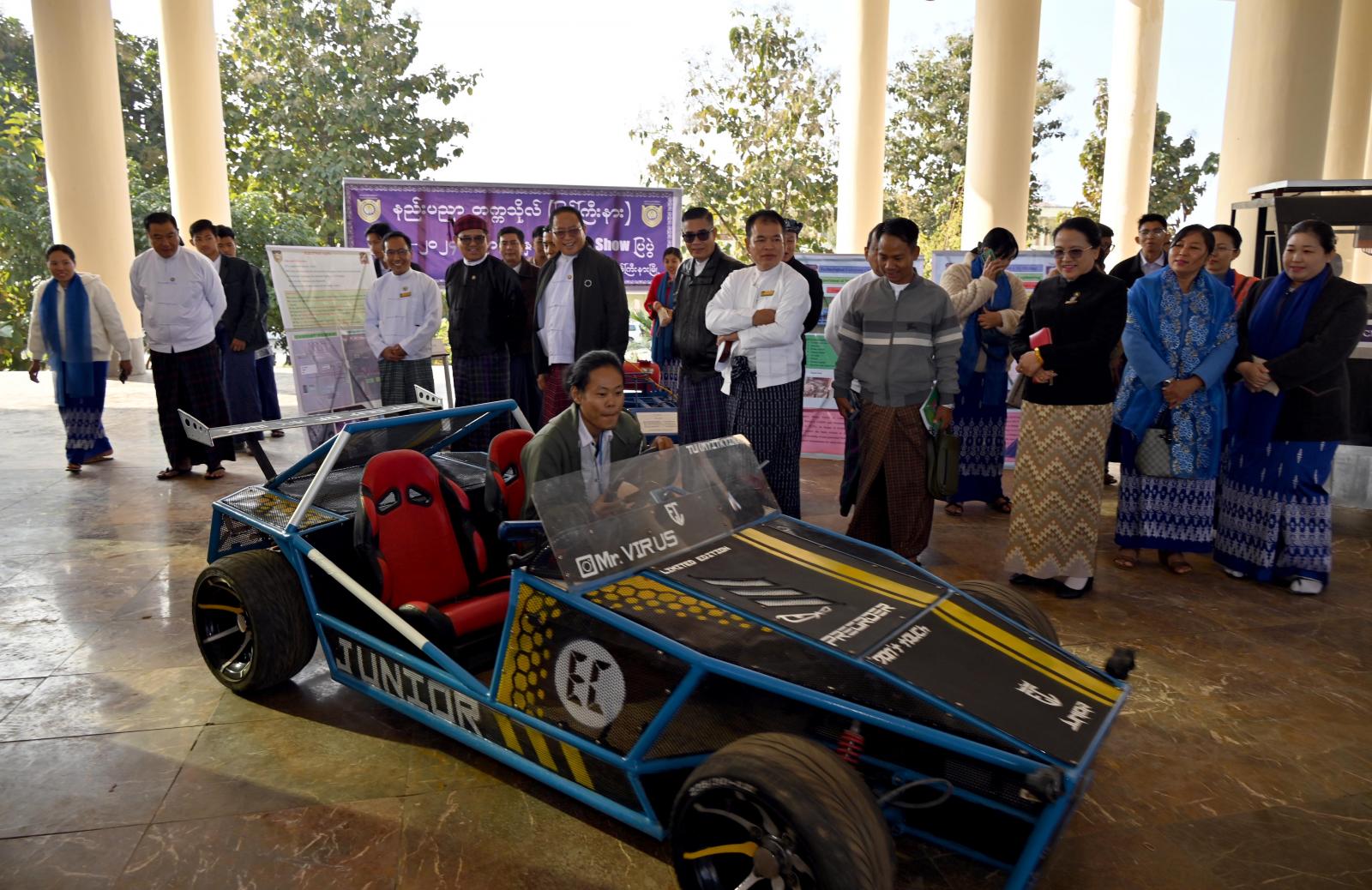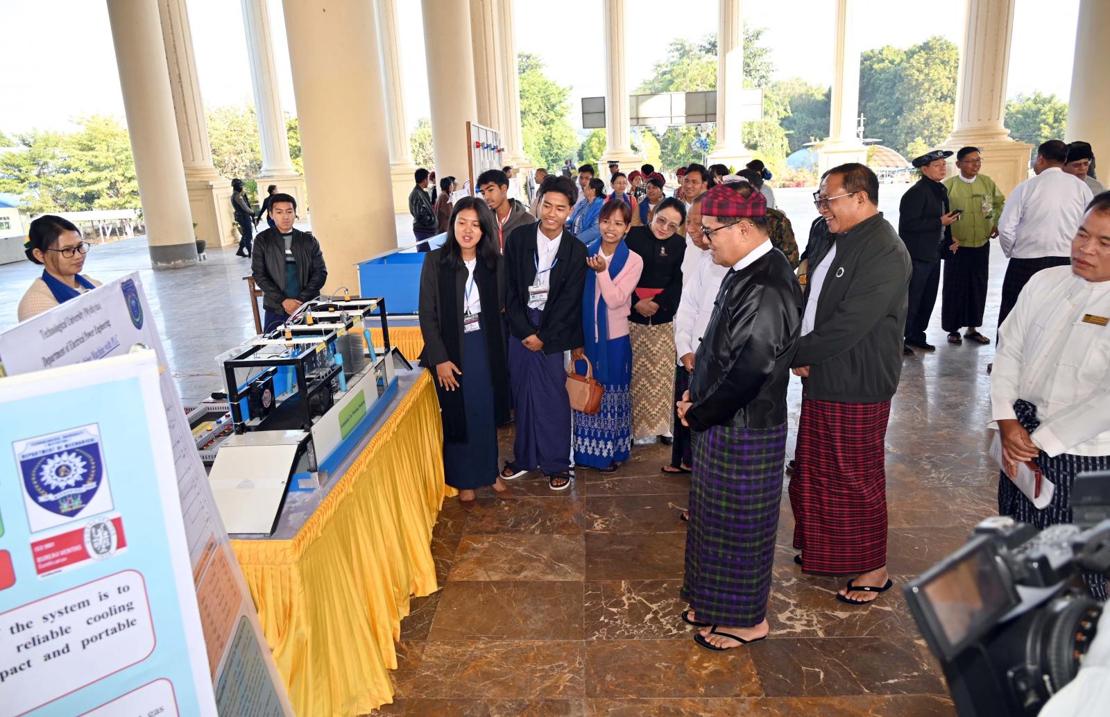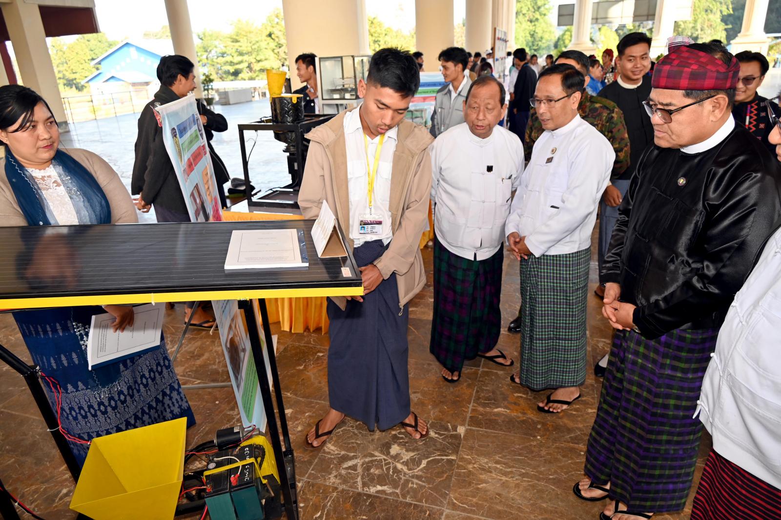 ရှေးဦးစွာ ပြည်နယ်ဝန်ကြီးချုပ်သည် ပြည်နယ်တရားလွှတ်တော်တရားသူကြီးချုပ်၊ ပြည်နယ်ဝန်ကြီးများ၊ ဌာနဆိုင်ရာတာဝန်ရှိသူများနှင့်အတူ နည်းပညာတက္ကသိုလ် ကျောင်းသား/ ကျောင်းသူများ၏ သင်ယူတတ်မြောက်မှုစွမ်းရည်ပြပွဲ (Project Show)အတွင်း ဘာသာရပ်အလိုက် Project လုပ်ငန်းများကို တီထွင်စမ်းသပ်ကာ ပြသထားသည့်အိမ်တွင်း လျှပ်စစ်ဝါယာသွယ်တန်းခြင်း၊ နေရောင်ခြည်စွမ်းအင်သုံး ဆိုလာစနစ်ဖြင့် တိရစ္ဆာန်အစာကြိတ်ခွဲစက်၊ စပါးခြွေလှေ့စက်ငယ်နှင့် ဆိုလာစွမ်းအင်၊ စက်သုံးဆီစွမ်းအင်ဖြင့် ဘက်စုံသုံးကားငယ်တီထွင်ပြသထားရှိမှု၊ လျှပ်စစ်စွမ်းအင်သုံး မော်တော်ကားတီထွင်ပြသထားရှိမှု စသည့်ပြပွဲအား ဘာသာရပ်အလိုက် ဆရာ၊ ဆရာမများ၊ ကျောင်းသား/ ကျောင်းသူများ၏ လိုက်လံရှင်းလင်းတင်ပြမှုတို့ကို လှည့်လည်ကြည့်ရှုအားပေးခဲ့ကြသည်။