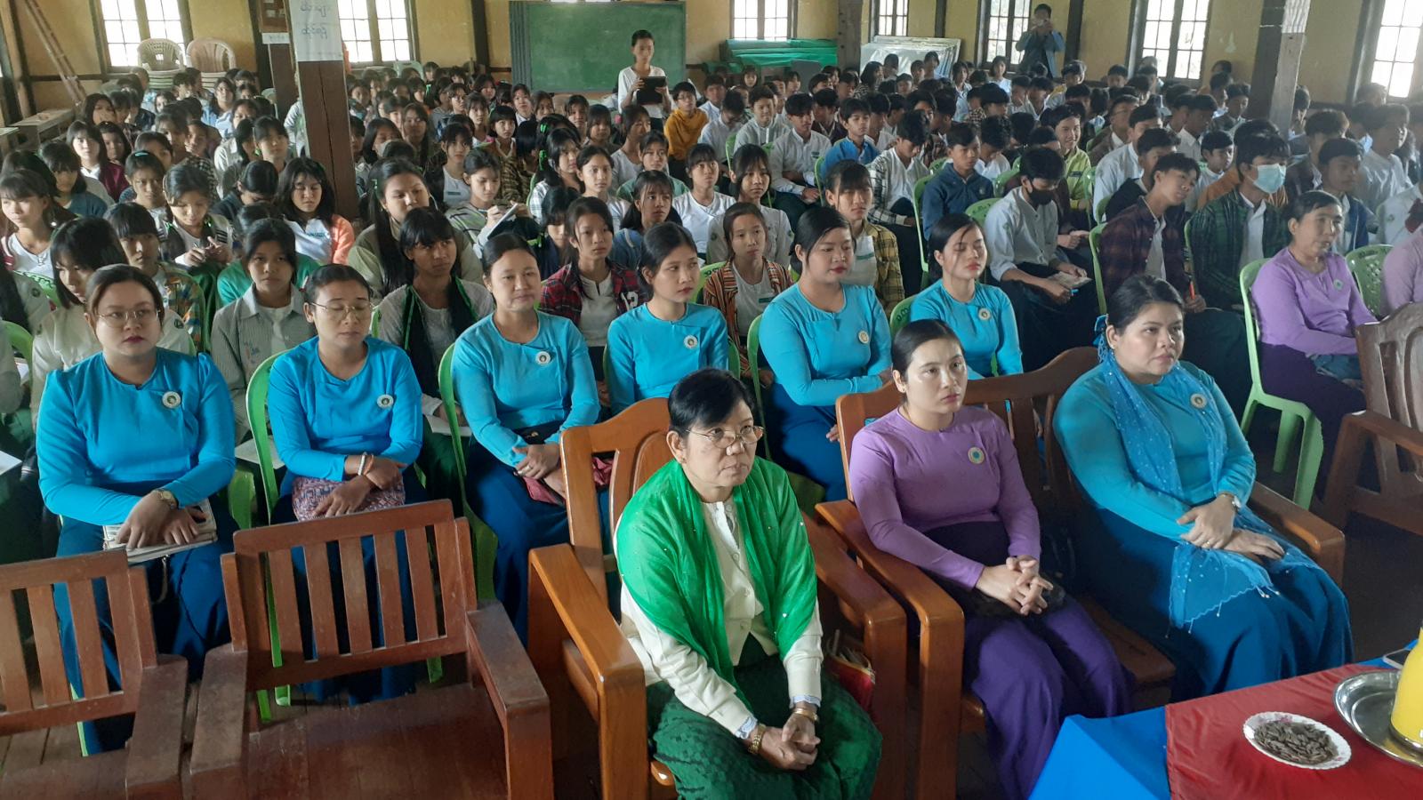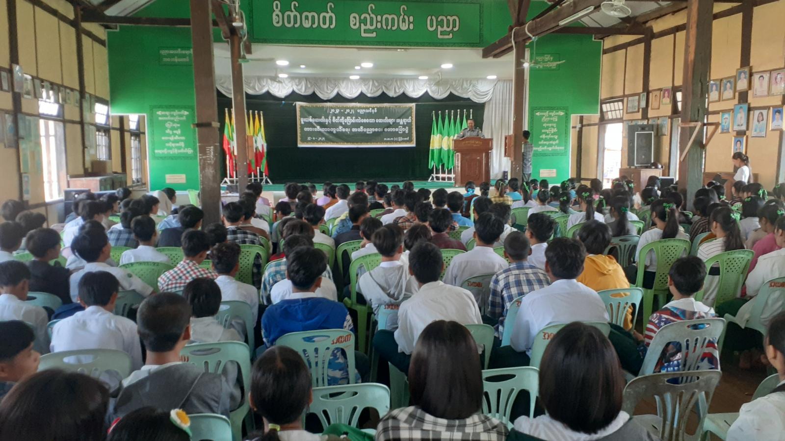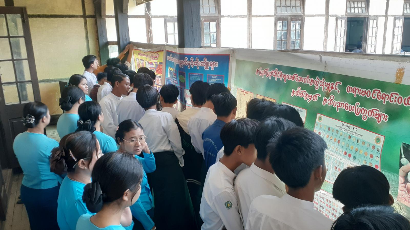 အခမ်းအနားတွင် မြို့နယ်ရဲတပ်ဖွဲ့မှူး ရဲမှူးတင်ဝင်းက မူးယစ်ဆေးဝါးနှင့် စိတ်ကိုပြောင်းလဲစေသော ဆေးဝါးများအန္တရာယ် တားဆီးကာကွယ်ရေးအကြောင်း အသိပညာပေးဟောပြောပြီး မြို့နယ်ပြန်ကြားရေးနှင့်ပြည်သူ့ဆက်ဆံရေးဦးစီဌာန ဦးစီးအရာရှိ ဦးဇော်မင်းထွန်းက "ကောင်းကျိုးမပေး မူးယစ်ဆေး စုပေါင်းကာကွယ် မူးယစ် အန္တရာယ်"ခေါင်းစဥ်နှင့် မြို့နယ်အမျိုးသမီးရေးရာအဖွဲ့ ဥက္ကဋ္ဌ ဒေါ်သင်းလှိုင်ဦးက "တန်ဖိုးရှိလှ လူငယ်ဘဝ၊ မူးယစ်ကင်းစင် ကျန်းမာမှ" စသည့်ခေါင်းစဥ်တို့ဖြင့် မူးယစ်ဆေးဝါးအန္တရာယ် တားဆီးကာကွယ်ရေးအကြောင်း အသိပညာပေးဟောပြောခဲ့ကြပြီး ကျောင်းသား /သူများ သိရှိလိုသည်များကို တာဝန်ရှိသူများက ပြန်လည်ရှင်းလင်း ဖြေကြားခဲ့ကြသည်။