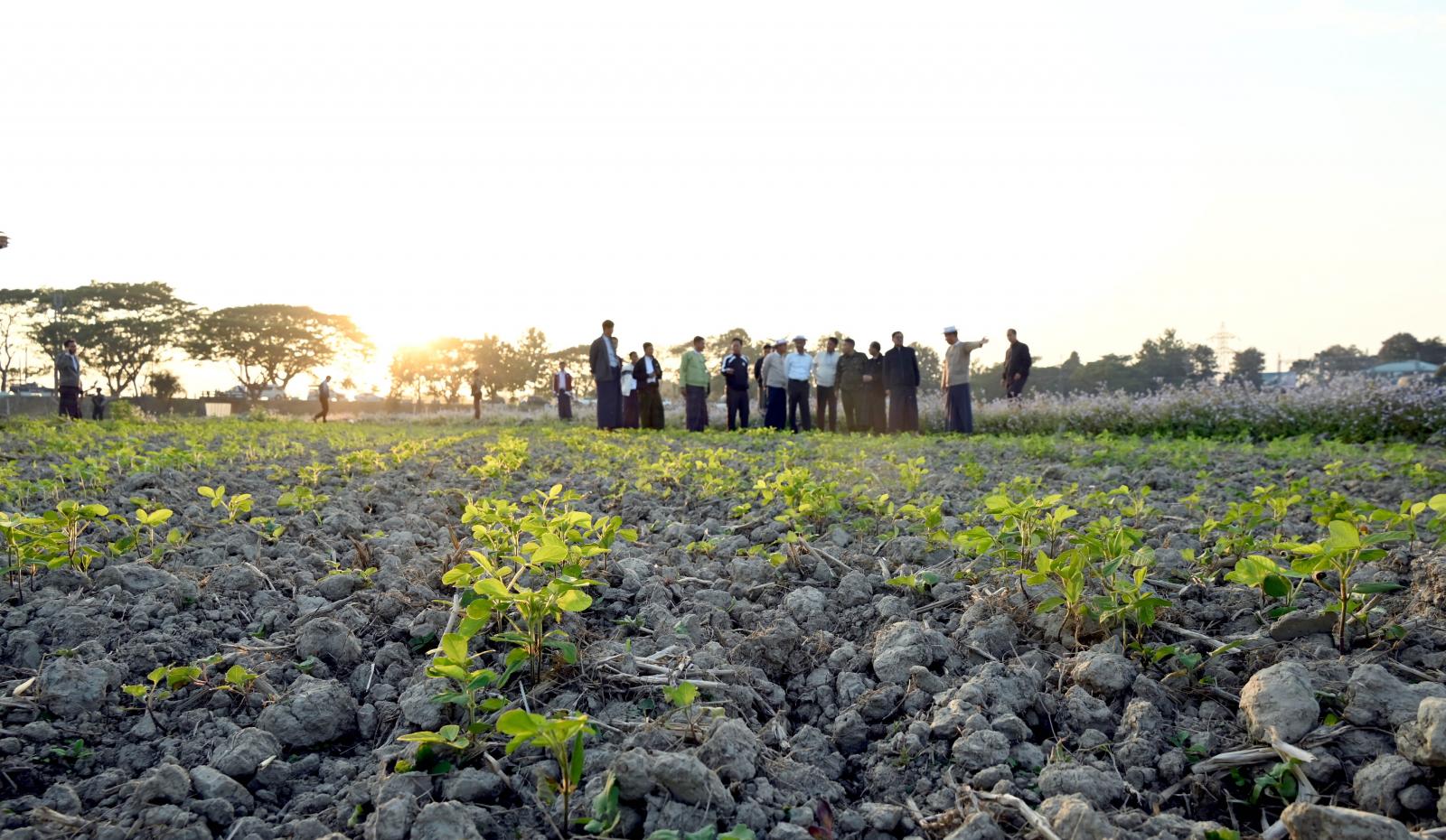 ယင်းနောက် ပြည်နယ်ဝန်ကြီးချုပ်နှင့်အဖွဲ့ဝင်များသည် မြစ်ကြီးနားမြို့ ဗလမင်းထင် စံပြစိုက်ကွင်းသို့ သွားရောက်ပြီး စိုက်ကွင်းအတွင်း မန်ခိန်ကွင်းဘက်၌ ဆောင်းသီးထပ် လယ်သီးနှံအဖြစ် ဆီထွက်သီးနှံ ပဲပုပ်နှင့်နေကြာသီးညှပ်စိုက်ပျိုးထားရှိမှု၊ ခရမ်းချဉ်သီးစိုက်ခင်းများ အောင်မြင်ဖြစ် ထွန်းမှုအခြေအနေနှင့် အဆိုပါကွင်းအတွင်း လယ်ဧက ၇၅ ဧကတွင် အပြည့်အဝ သီးထပ်စိုက်ပျိုးနိုင်ရေးကို လည်းကောင်း၊ တပ်ကုန်းကွင်းဘက်၌လည်း ပဲပုပ်နှင့်နေကြာသီးညှပ်၊ ပြောင်းစိုက်ခင်းများ စိုက်ပျိုးထားရှိမှု၊ လယ်ဧက ၂၅ ဧက သီးထပ်စိုက်ပျိုးနိုင်ရေး လယ်ထွန်စက်ဖြင့် ထွန်ယက်ပေးနေမှု၊ ရေရရှိရေးပင်မမြောင်းအတွင်း ရေသွင်းဆောင်ရွက်ထားရှိမှု အခြေအနေများကိုလည်းကောင်း လှည့်လည်ကြည့်ရှုစစ်ဆေးခဲ့ကြပြီး သီးထပ်စိုက်ပျိုးမှု အောင်မြင်ဖြစ်ထွန်းစေရေး လိုအပ်သည့်သီးနှံမျိုးစေ့၊ မြေသြဇာနှင့် နည်းပညာများပံ့ပိုးကူညီဆောင်ရွက်ပေးနိုင်ရေး သက်ဆိုင်ရာတာဝန်ရှိသူများနှင့် ပေါင်းစပ်ညှိနှိုင်း၍ ဖြည့်ဆည်းဆောင်ရွက်ပေးခဲ့ကြောင်း သိရသည်။
