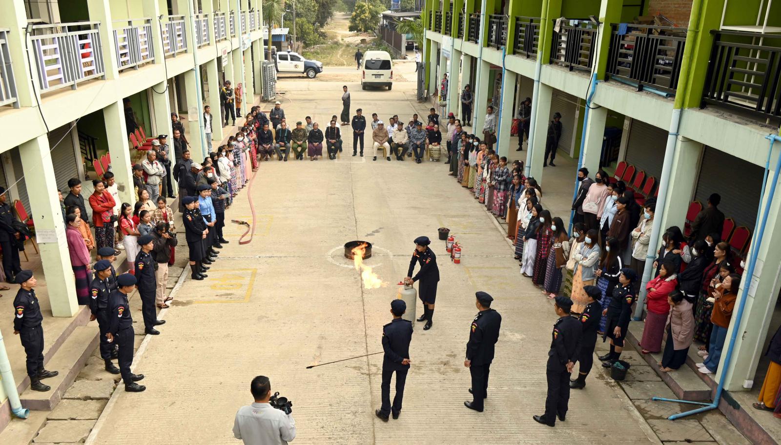 ထိုမှတစ်ဆင့် မြစ်ကြီးနားမြို့ အေးမြသာယာရပ်ကွက်အတွင်းရှိ အေးမြသာယာအဆင့်မြှင့်ဈေး၌ ဈေးသူ/ဈေးသားများနှင့် ရပ်ကွက်နေပြည်သူများအတွက် မီးသတ်ဦးစီးဌာနမှ တပ်ဖွဲ့ဝင်များက အရေးပေါ်မီးလောင်မှုဖြစ်ပွားပါက မီးငြိမ်းသတ်နိုင်ရေးအတွက် ဂတ်စ်အိုးမီးလောင်မှု၊ ဆီမီးလောင်မှု ဖြစ်စဉ်များတွင် မီးငြှိမ်းသတ်နည်းများကို လက်တွေ့သရုပ်ပြ အသိပညာပေးဆောင်ရွက်နေမှုများကို ကြည့်ရှုအားပေးခဲ့ကြပြီး ပြည်နယ်ဝန်ကြီးချုပ်က မီးသတ်တပ်ဖွဲ့ဝင်များအတွက် ထောက်ပံ့ငွေများကို ထောက်ပံ့ပေးအပ်သည်။
