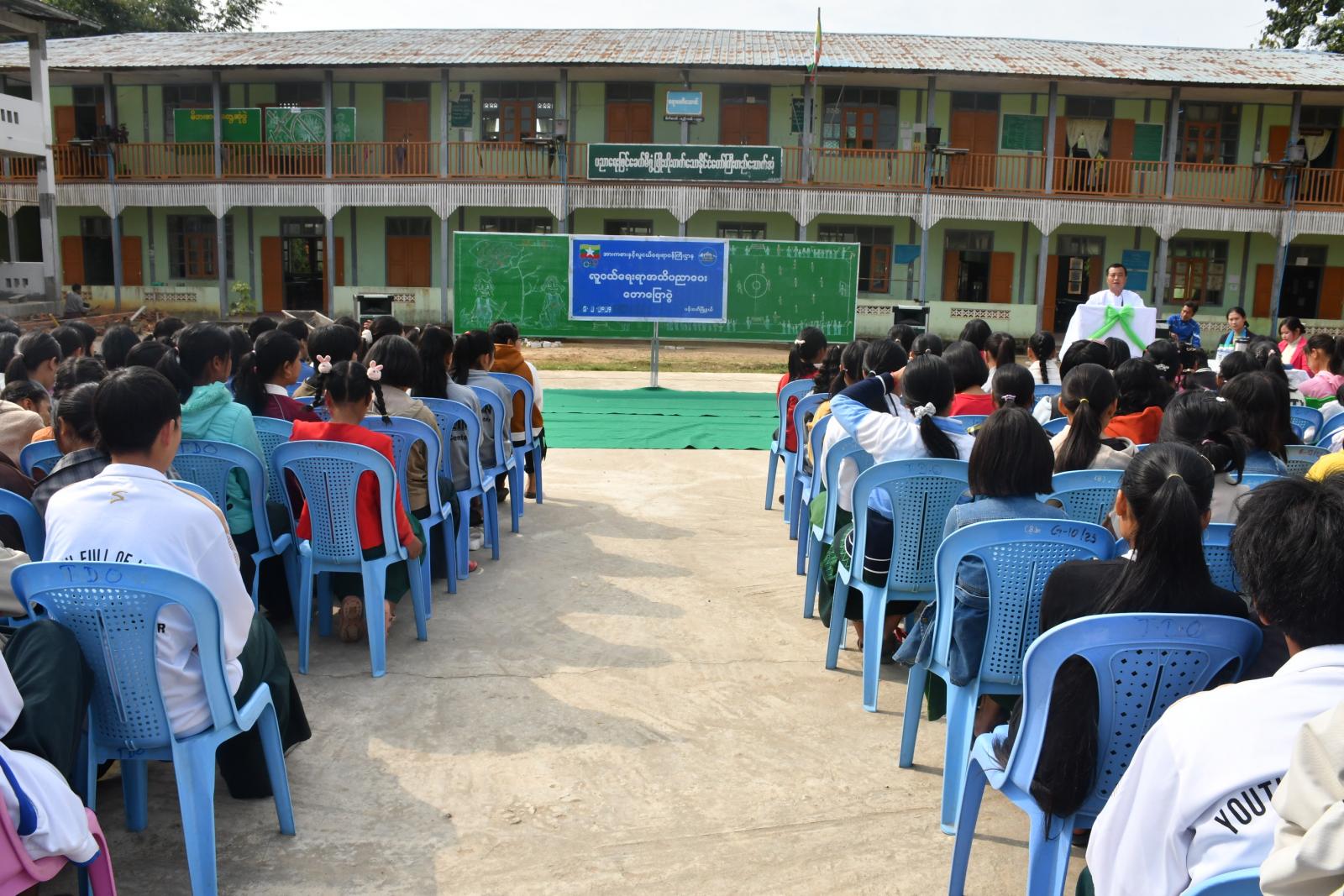 ရှေးဦးစွာ ကျောင်းအုပ်ဆရာမကြီး ဒေါ်ခင်ဌေးဝင်းက အဖွင့်အမှာစကားပြောကြားပြီး၊ ဒုတိယမြို့နယ်ပညာရေးမှူး ဆရာကြီးဦးထွန်းထွန်းဦးက ကျောင်းသား၊ ကျောင်းသူများကို ကျောင်းစာအပြင် ပြင်ပဗဟုသုတများရရှိစေရန် ရည်ရွယ်၍ ဩဝါဒစကားပြောကြားခဲ့သည်။